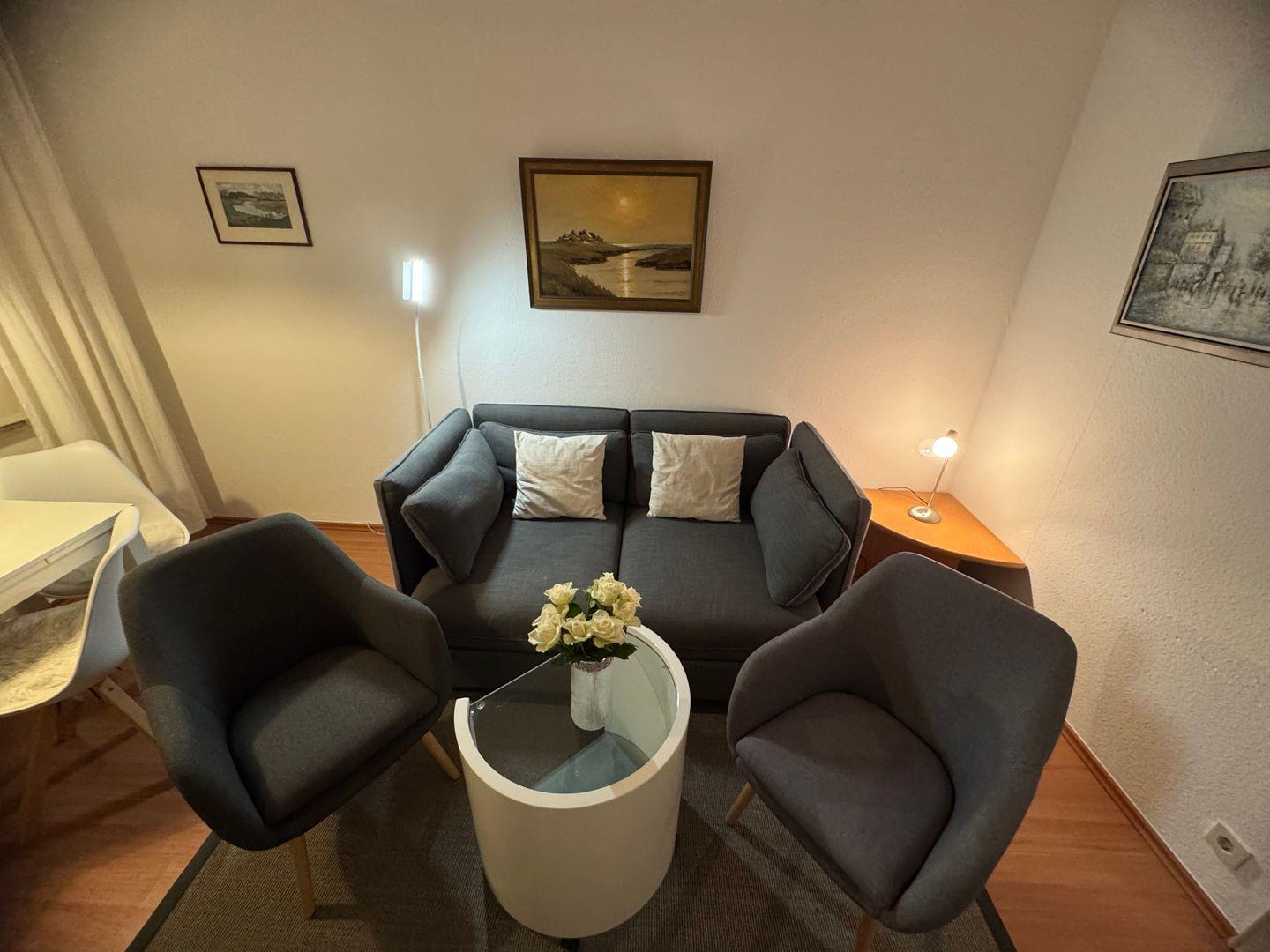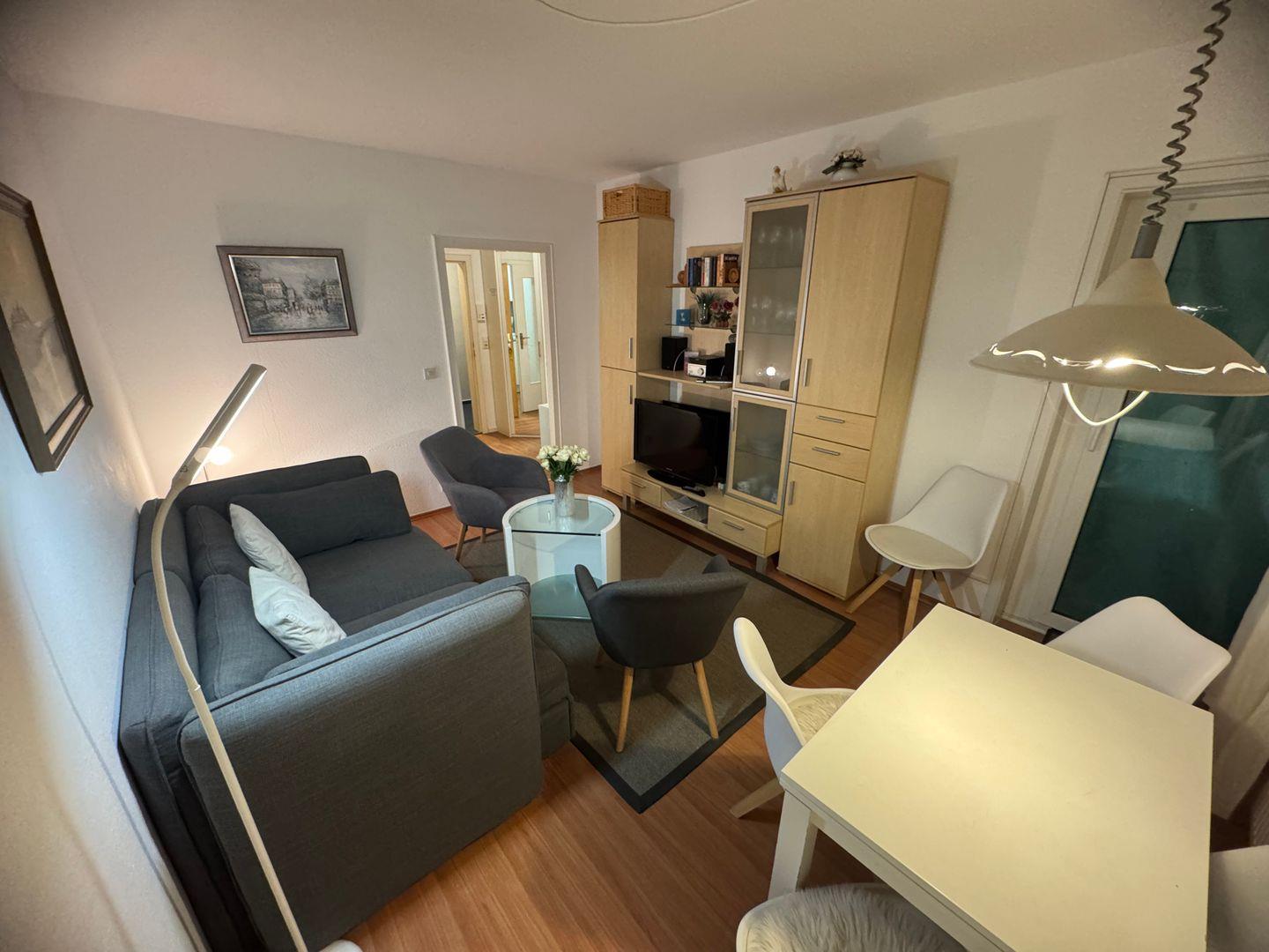 Die Ferienwohnung zählt insgesamt zwei Zimmer, darunter ein gemütliches Schlafzimmer mit einem komfortablen Doppelbett, das einen erholsamen Schlaf verspricht. Im Wohnbereich finden Sie ein einladendes Sofa, das nach einem aufregenden Tag zu entspannten Stunden einlädt. Der Essbereich ist ideal für gemeinsame Mahlzeiten und gesellige Abende. Eine vollständig ausgestattete Küche mit modernen Elektrogeräten, darunter ein 2-Platten-Ceran-Kochfeld, Kühlschrank, Geschirrspüler und Kaffeemaschine, lässt keine Wünsche offen und erlaubt es Ihnen, leckere Gerichte zuzubereiten.