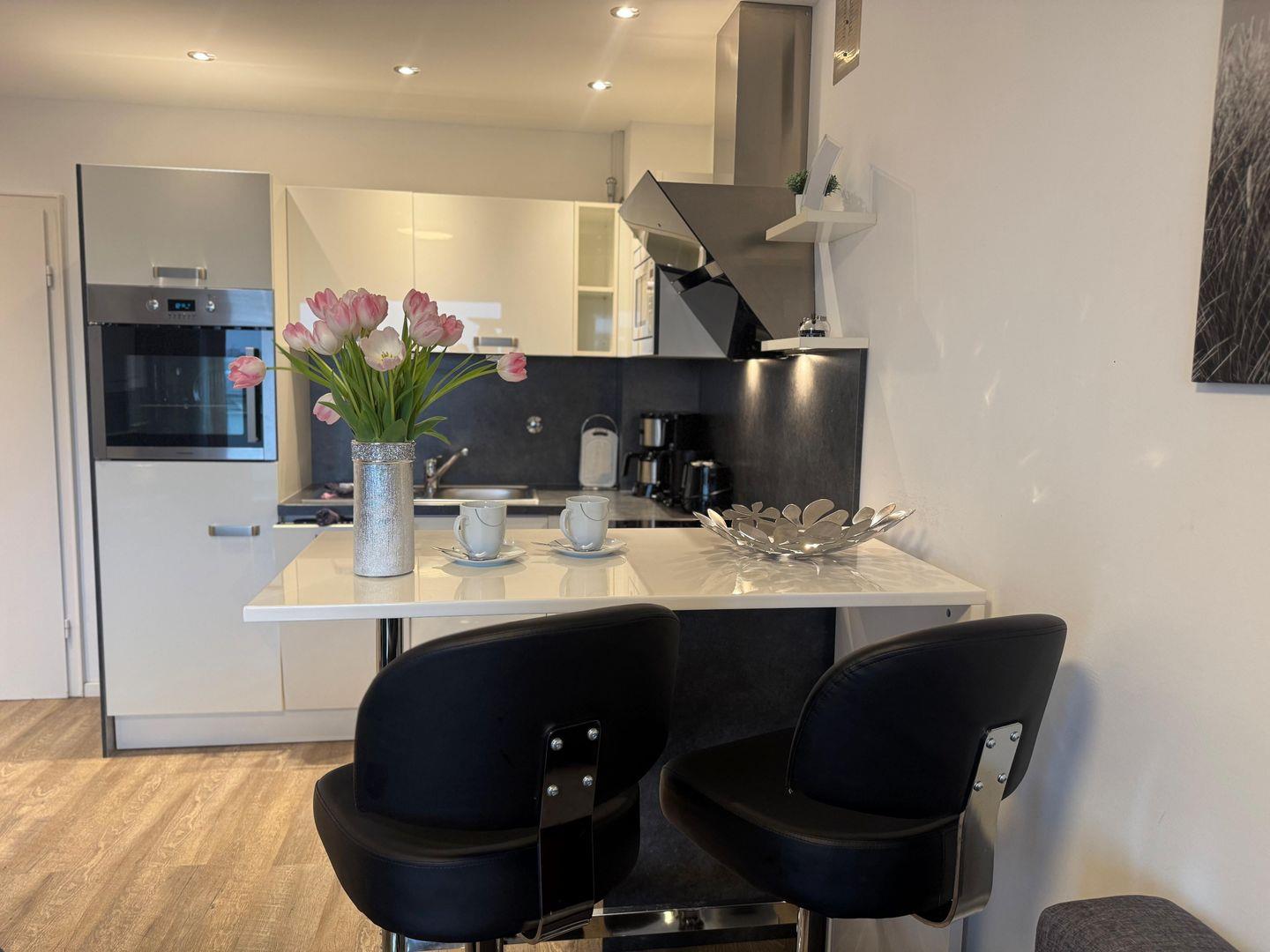 Die Wohnung ist hell und freundlich gestaltet und umfasst ein Schlafzimmer sowie ein gemütliches Wohnzimmer, das nahtlos mit der offenen Küche verbunden ist. Die moderne Ausstattung der Küche lässt keine Wünsche offen: Ob Sie ein herzhaftes Frühstück zubereiten oder ein romantisches Abendessen planen, Sie finden alles, was Sie benötigen. Zu den Küchengeräten gehören ein Herd, Backofen, Spülmaschine, Mikrowelle, Kühlschrank mit Gefrierfach sowie Geschirr und Besteck. Ein Esstisch lädt zum gemeinsamen Essen und Zusammensitzen ein.