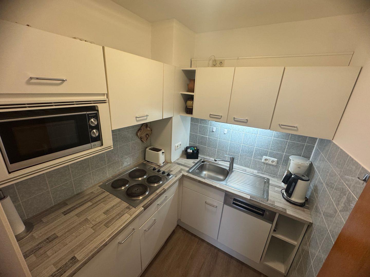 Die voll ausgestattete Küche lässt keine Wünsche offen. Mit modernen Geräten wie einem Herd, einer Spülmaschine, einer Mikrowelle, einem Kühlschrank und einer Kaffeemaschine gelingt auch die Zubereitung von selbstgekochten Mahlzeiten ohne Probleme. Von der Wohnung aus gelangen Sie direkt auf den Balkon, wo Sie die frische Luft und den Blick auf die Umgebung genießen können.