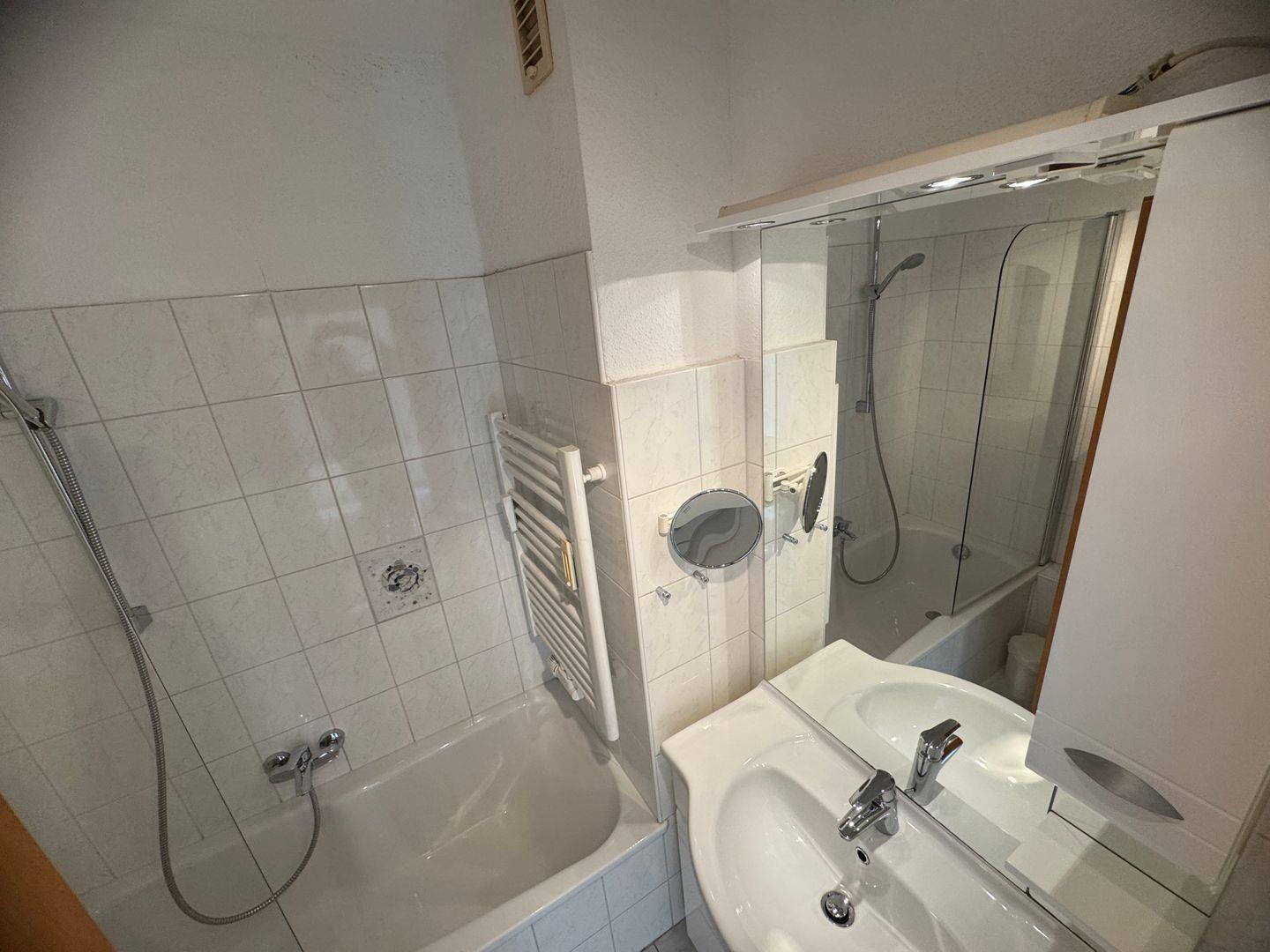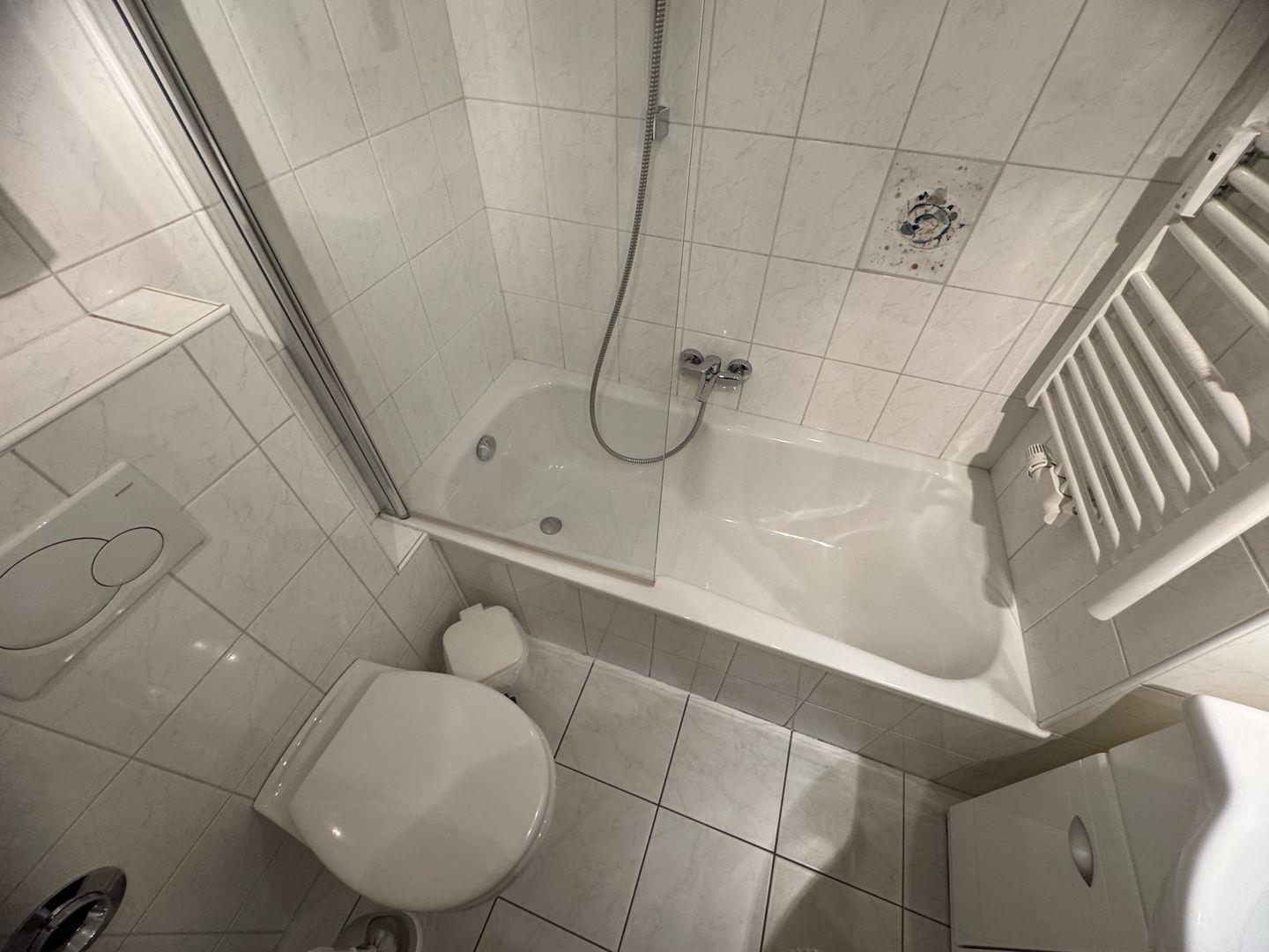 Das Schlafzimmer ist ein ruhiger Rückzugsort, der mit einem komfortablen Bett ausgestattet ist und ausreichend Stauraum bietet. Ein Badezimmer mit Badewanne steht zu Ihrer Verfügung. Zusätzliche Annehmlichkeiten wie Waschmaschine und Trockner zur gemeinschaftlichen Nutzung machen den Aufenthalt besonders bequem.