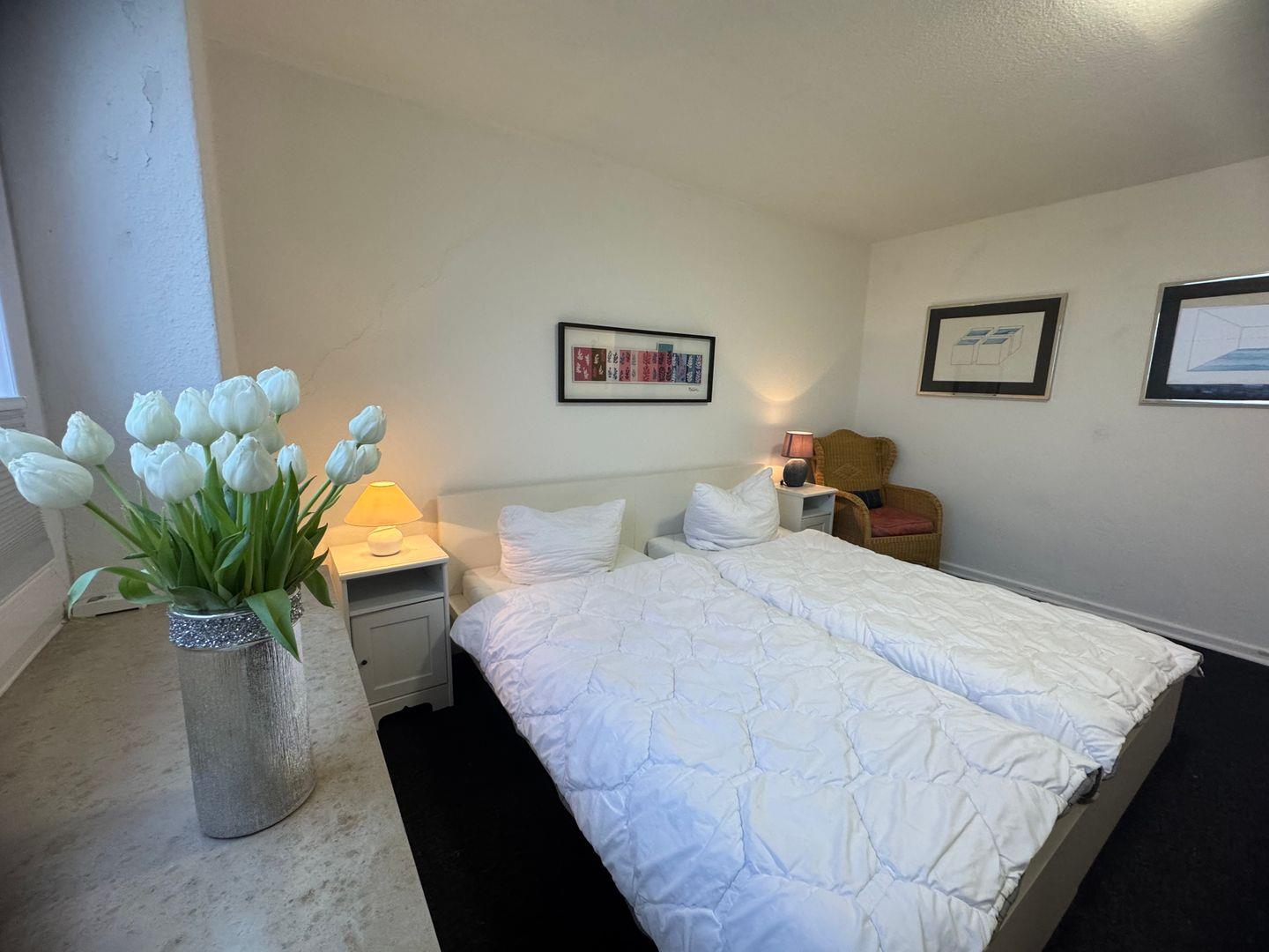 Das Schlafzimmer ist hell und freundlich eingerichtet und verfügt über einen bequemen Schlafplatz für bis zu drei Personen. Hier können Sie nach einem erlebnisreichen Tag auf Sylt erholsame Nächte verbringen. Das Badezimmer ist mit einer Dusche, einem Haartrockner und modernen Sanitäranlagen ausgestattet, um Ihnen höchsten Komfort zu bieten. Die Wohnung ist zudem eine Nichtraucherunterkunft.