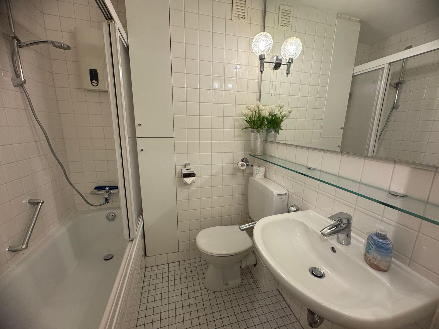 Die Wohnung verfügt über ein liebevoll eingerichtetes Schlafzimmer, das gemütlichen Schlafkomfort bietet. Hier finden Sie genügend Platz, um sich zu entspannen und zur Ruhe zu kommen. Angrenzend befindet sich das moderne Badezimmer mit einer Badewanne – der ideale Ort, um nach einem erlebnisreichen Tag zu entspannen.