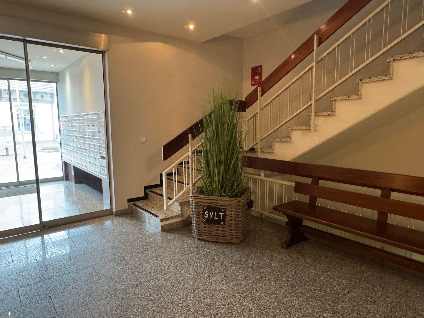 Sie gelangen in einen modernen, zweckmäßigen Eingangsbereich, wovon ein Gäste WC abgeht.