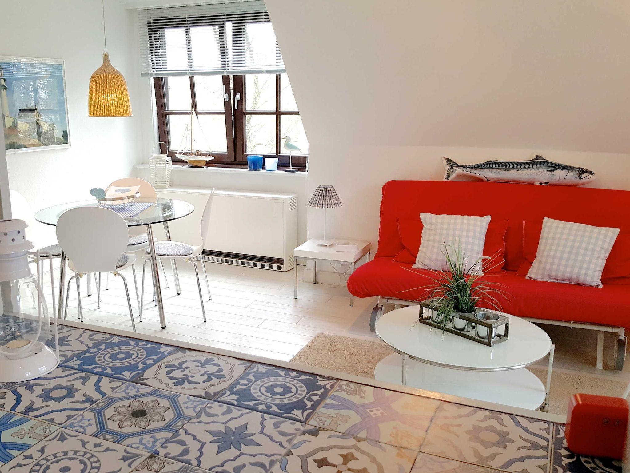 Das Appartement Seewolke N°1 im 1. Stock ist für max. 4 Personen; 2 Zimmer, moderne Top-Ausstattung, Süd-West-Balkon, kleines Duschbad, Küche, großer Flur.
