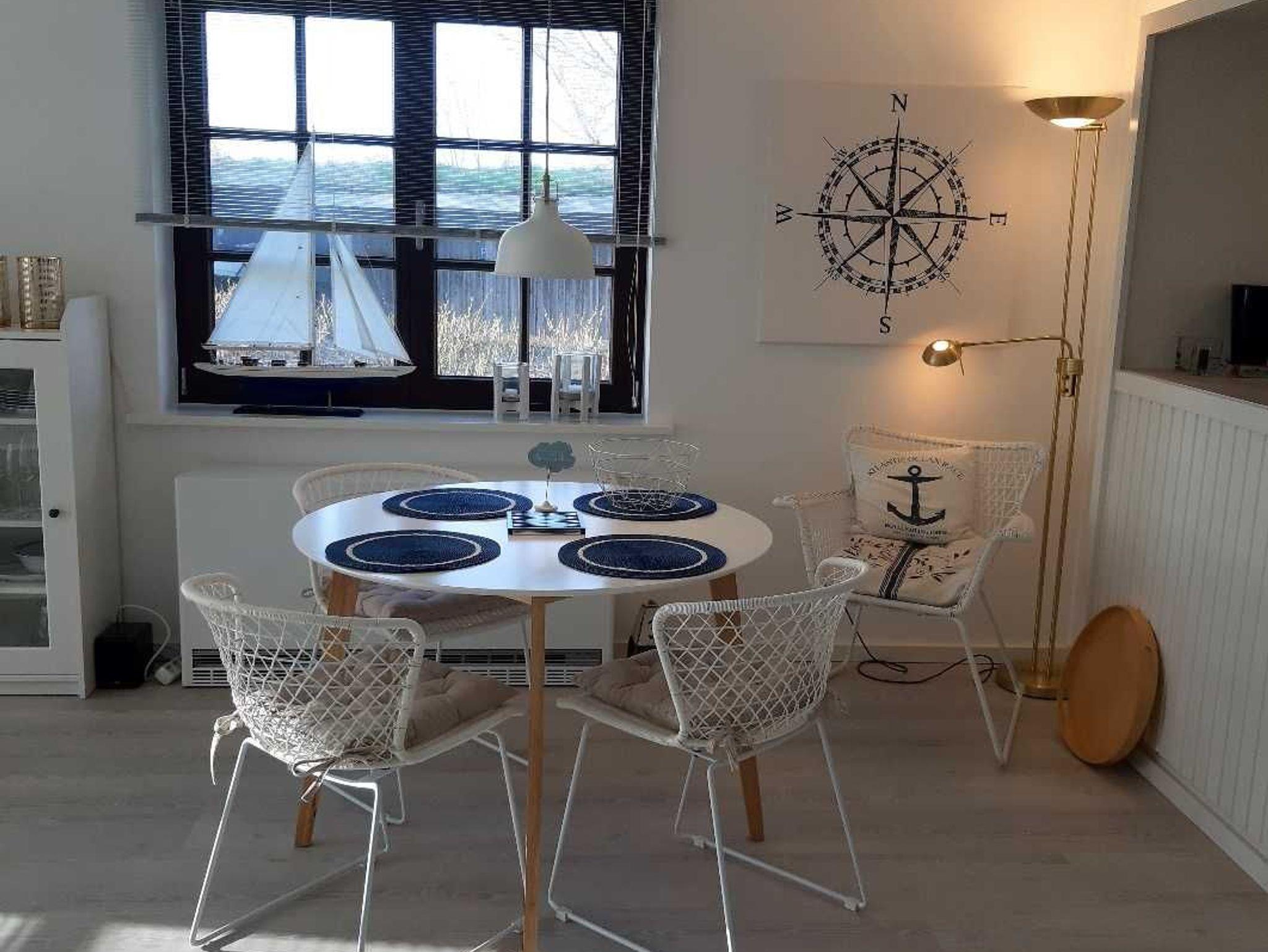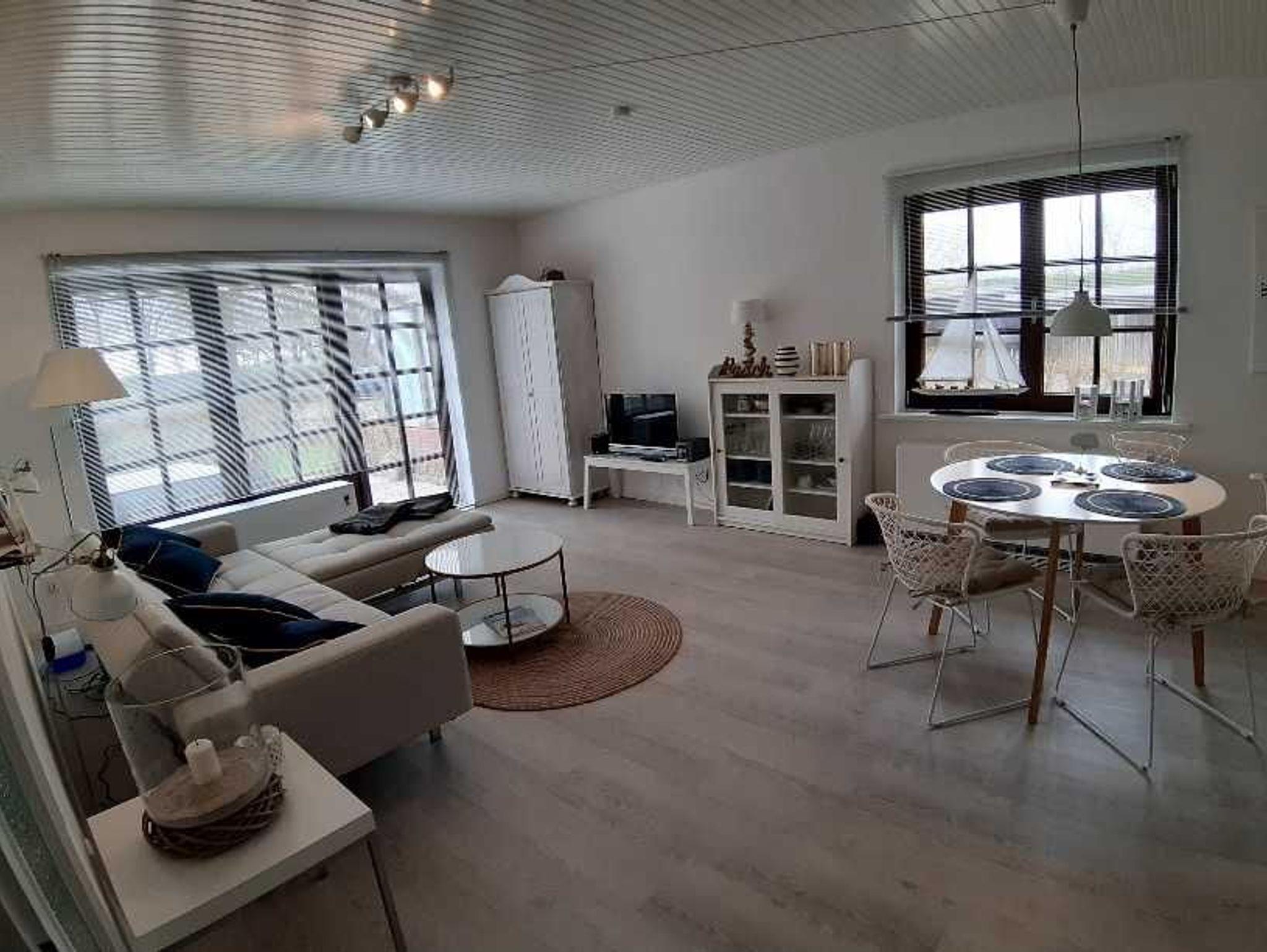 Gemütliches Appartement Seewolke N°3 in Katingsiel mit Kamin, Terrasse und maritimem Flair für entspannte Nordseeferien.