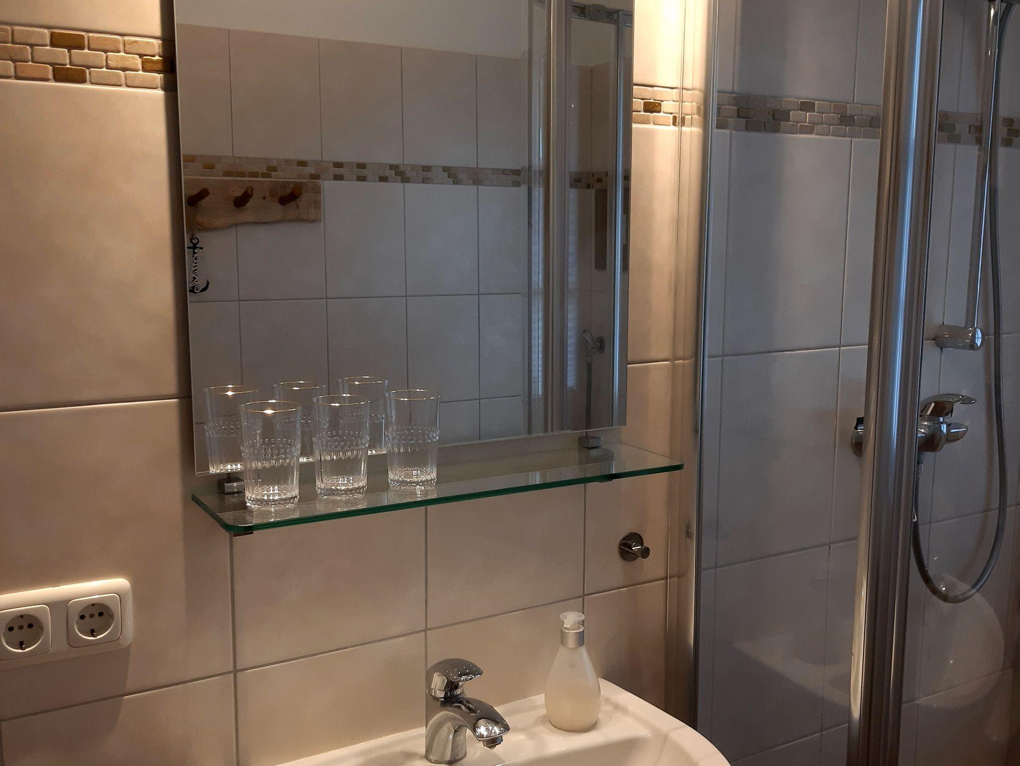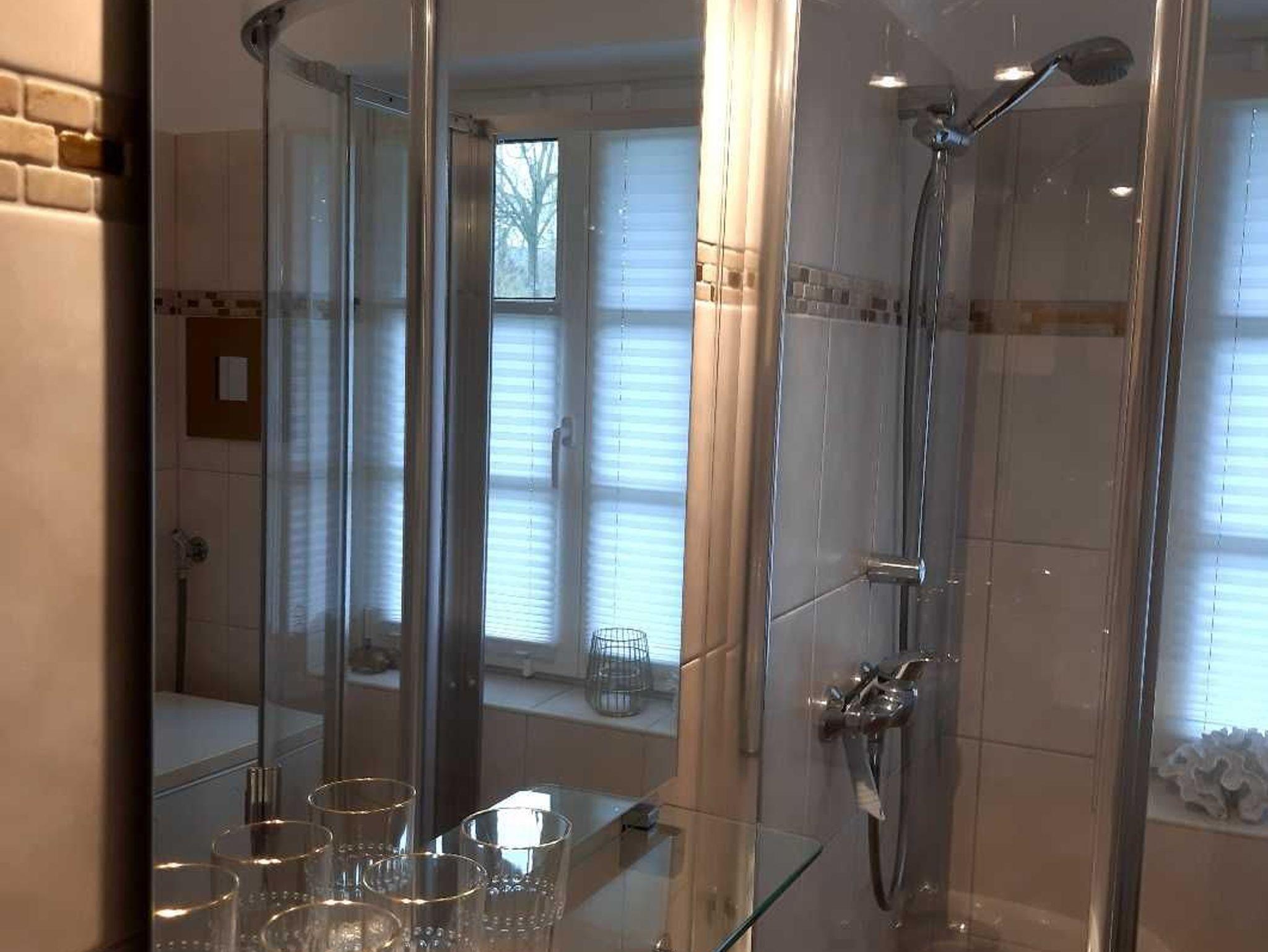 SEEWOLKE N° 3 besteht aus einem Wohn-/Esszimmer mit neuem modernem Schlafsofa (1,20x 2,00 m), einem Schlafzimmer mit Doppelbett, einer voll ausgestatteten offenen Küche mit Fenster mit 4 Platten Ceranfeld-Herd, Backofen, Geschirrspüler, Kühlschrank, Gefrierschrank und Mikrowelle sowie ausreichend hochwertigem Geschirr und Gläsern, Töpfen etc., einem Flur, einem modernisierten Duschbad mit Waschmaschine und einem praktischen Abstellraum. Gegen störende Mücken in der Nacht befinden sich an vielen Fenstern Insektenschutzrahmen.