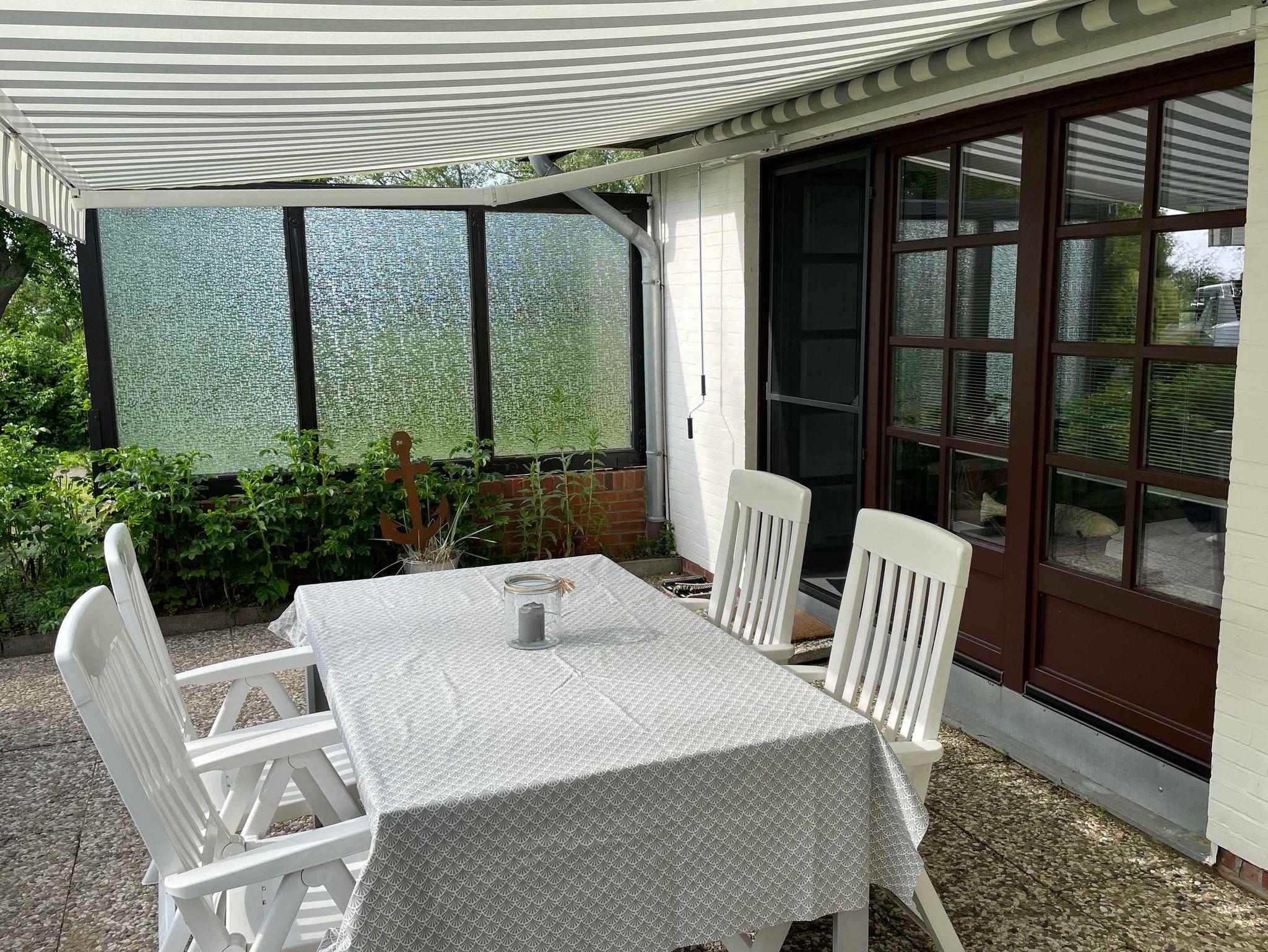 Diese Wohnung hat einen Kaminofen und einen Strandkorb auf der Terrasse. Sie ist erst vor kurzem renoviert worden.