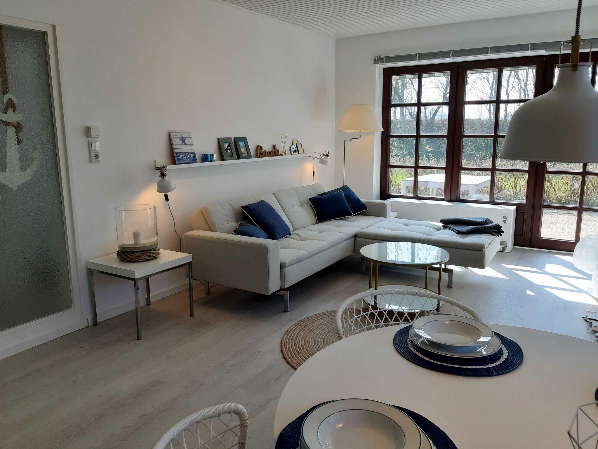 Die Seewolke N°3 verfügt über 2 Zimmer, moderne Ausstattung, schönes Duschbad, moderne Küche, Flur, Abstellraum. Kuschelig wird es Herbst und Winter mit dem Kaminofen! Die Terrasse hat einen Strandkorb.