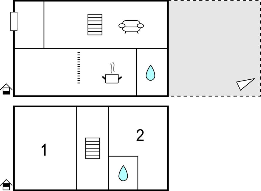 Badezimmer 4m2 (nr. 1) - WC. Warmes und kaltes Wasser. Dusche