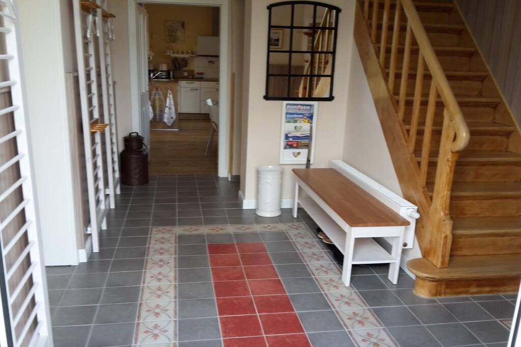 Wollen Sie mit befreundeten Paaren oder mehreren Generationen gemeinsam Urlaub machen, dann ist unser Tönnihuus die richtige Wahl. Das gemütliche Ambiente schafft die Voraussetzung mit lieben Menschen die Freizeit zu verbringen. 48 m² Wohn/Esszimmer schafft Freiraum für das Zusammenleben. Gemeinsames Kochen am großen Induktionskochfeld ermöglicht die Küche mit Klönplatz, Tresen und offenem Übergang zum Wohn/Essraum. Im EG. befinden sich noch 1 WC und 1 Hauswirtschaftsraum. Im OG und DG findet jeder Rückzugsmöglichkeiten in 4 Schlafräumen mit TV und 4 Bädern. Zum Wohnen im Freien warten Strandkörbe, Gartenmöbel, Sonnenliegen und Grill auf der Terrasse oder im Garten. Im Fahrradraum haben E-Bikes eine Lademöglichkeit. Autos parken auf dem Grundstück und in der ruhigen Sackgasse.