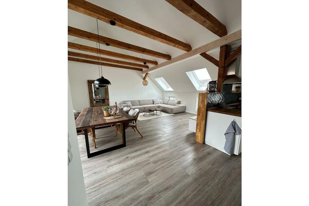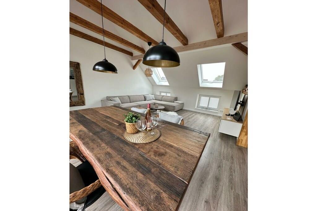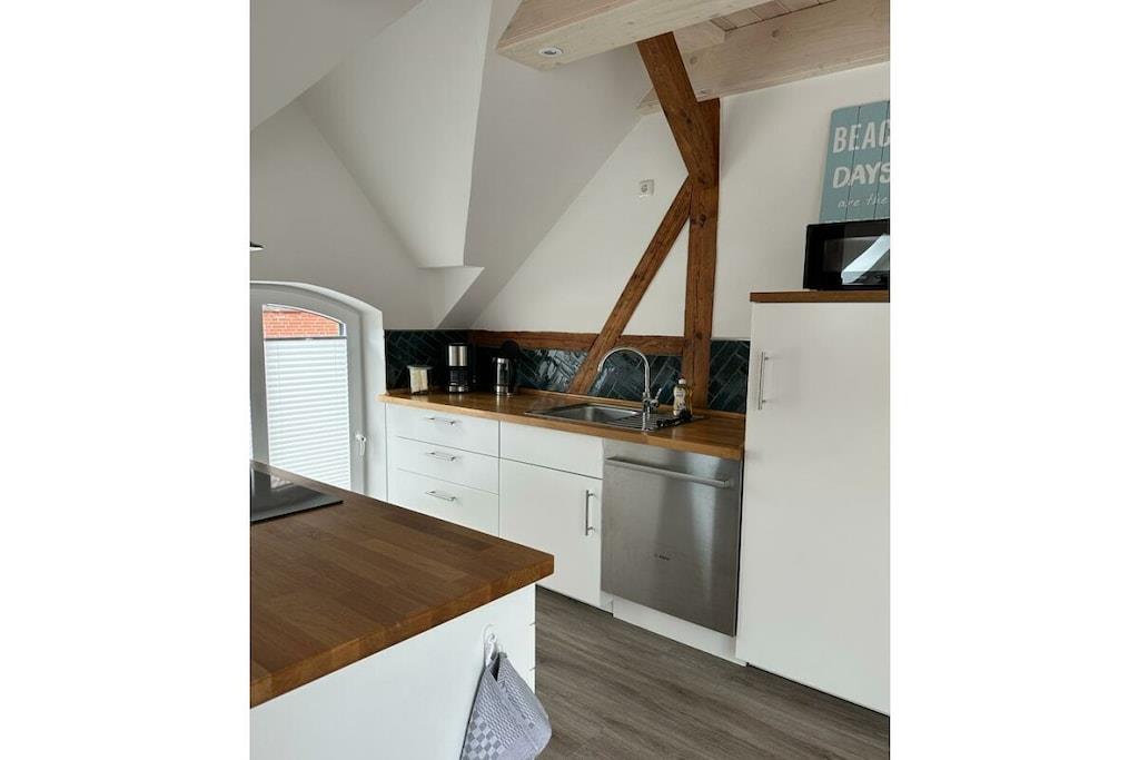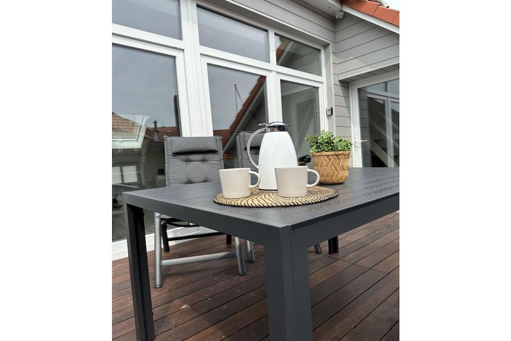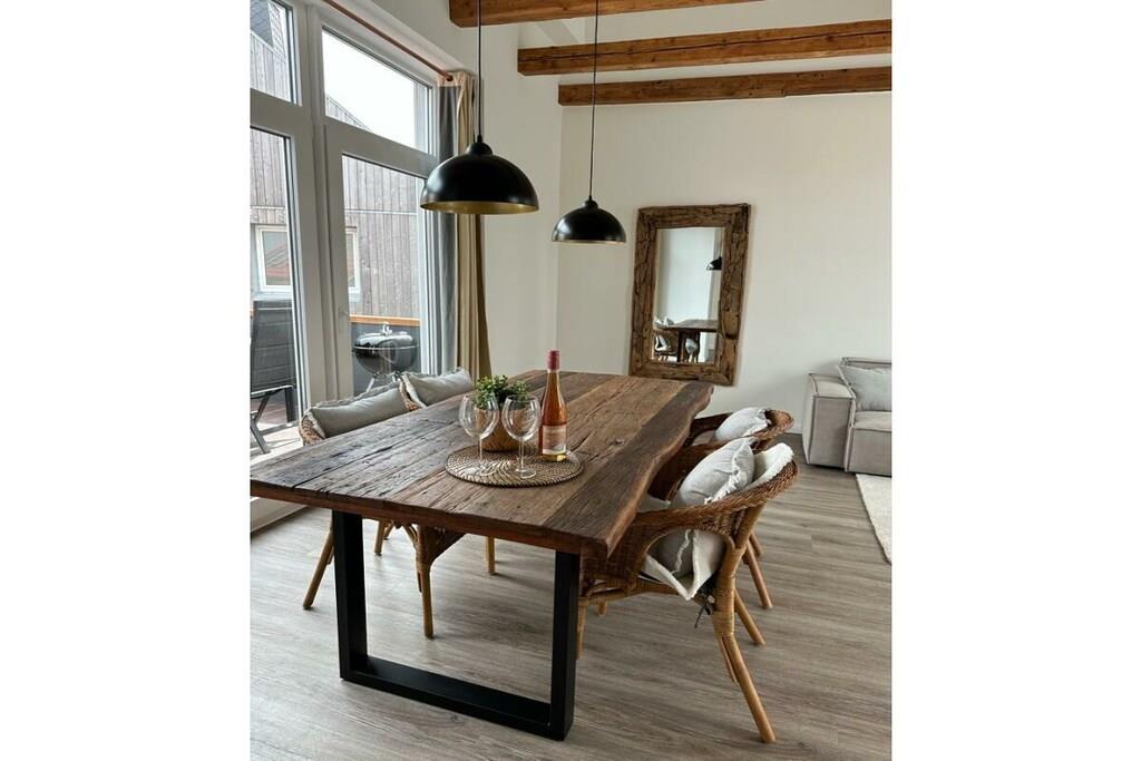 Willkommen in der „Fischerstuv“, einer exquisiten Ferienwohnung, die sich unmittelbar an der Hafenpromenade von Tönning befindet. Diese liebevoll gestaltete und 2023 neu eingerichtete Unterkunft bietet Ihnen mit Ihren großzügigen 90 Quadratmetern Platz für 1 bis 6 Personen, um einen unvergesslichen Urlaub nahe der Nordsee zu erleben. Der lichtdurchflutete Wohnraum der „Fischerstuv“ ist der perfekte Ort, um gemeinsam mit Familie oder als Paar die freie Zeit zu genießen. Das gemütliche Sofa lädt zum Entspannen ein, der Esstisch bietet Raum für gesellige Mahlzeiten, und die voll ausgestattete Küche ermöglicht es Ihnen, kulinarische Köstlichkeiten zu zaubern. Die Ferienwohnung ist nicht nur für Menschen, sondern auch für Ihre vierbeinigen Begleiter geeignet, da Haustiere herzlich willkommen sind. Auf der großzügigen Dachterrasse erwartet Sie eine gemütliche Sitzecke, die sich perfekt für entspannte Stunden eignet und um die frische Nordseeluft zu genießen. Nutzen Sie den vorhandenen Grill, um die letzten Sonnenstrahlen des Tages in vollen Zügen zu genießen. Die Schlafmöglichkeiten in der „Fischerstuv“ sind vielfältig gestaltet. Ein Schlafzimmer mit einem hochwertigen Boxspringbett sorgt für erholsamen Schlaf, während ein weiteres Zimmer mit einem Etagenbett eine ideale Lösung für Familien oder Gruppen darstellt. Von der offenen Galerie aus haben Sie einen wunderbaren Überblick über den großzügigen Wohnraum, der auch ein ausziehbares Schlafsofa für zusätzliche Schlafmöglichkeiten bietet. Hier finden Sie den erholsamen Schlaf, den Sie während Ihres Urlaubs an der Nordseeküste benötigen. Bitte haben Sie Verständinis, dass bei einer Buchung unter 5 Tagen Zusatzkosten anfallen können. In Tönning wird eine Kurabgabe erhoben. Die Kurabgabe beträgt je Tag in der Zeit vom 15. Mai bis 30. September 2,20 EURO In der Zeit vom 01. April bis 14. Mai beträgt die Kurabgabe 0,90 EURO. Ermäßigungen für die Kurabgabe: Schüler und Auszubildende, die das 18. Lebensjahr vollendet haben, zahlen 0,90 EURO. Für Schwerbehinderte, die eine Behinderung von 50 % und mehr nachweisen, wird die Kurabgabe auf 50 % ermäßigt. Dies gilt auch für die erforderliche Begleitperson.