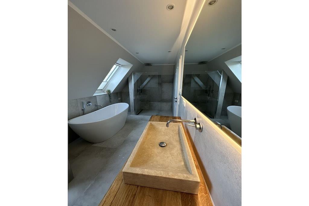 Parterre: (Wohn/Esszimmer(, Kochnische, TV, Esstisch, Kaminofen, Kochplatte, Wasserkocher, Kaffeemaschine, Backofen, Mikrowelle, Spülmaschine, Kühlschrank, Tiefkühlschrank, Heizung, Hochstuhl), Schlafzimmer(, , Doppelbett, Doppelbett, TV, Heizung), Badezimmer(, Toilette, Badewanne, Dusche, Dusche, Waschbecken, Heizung, Föhn), Ruheraum(Sauna, outdoor shower)) In der 1. Etage: (Schlafzimmer(, , Doppelbett, TV, Babybett, Heizung), Schlafzimmer(, , Doppelbett, Doppelbett, TV, Heizung), Schlafzimmer(, , Etagenbett, Etagenbett, Heizung), Badezimmer(, Toilette, Badewanne, Badewanne, Dusche, Dusche, Waschbecken, Heizung)) Dachgeschoss: (Schlafzimmer(, , Schlafcouch 1 Pers., Schlafcouch 1 Pers., Heizung)) , Internet, Internet, Waschmaschine, Terrasse(Gartenmöbel), Garten(Grill, Sandkasten), Parkplatz, Trockenschrank