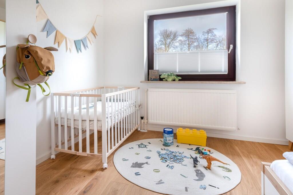 Unser barrierearmes Familien-Ferienhaus ist ebenerdig und bietet auf 105 qm Platz für 5 Personen. Vom hellen Flur gelangen Sie in das Elternschlafzimmer mit Boxspringbett, kleinem Arbeitsplatz, Babybett und großer Infrarotsauna, das Kinderzimmer für zwei Kinder mit vielen Spielmöglichkeiten, die voll ausgestattete Küche mit Wäscheraum, dem großen Wohn- und Esszimmer mit SmartTV, Playstation, Pellet-Kaminofen und das Bad mit Walk-In Regendusche und Fußbodenheizung. Der große neu gestaltete Garten mit teilüberdachter Terrasse, Strandkorb, Grill, Sandkasten,Schaukel- und Klettergerüst. Kräuterbeet und ausreichend Sitzmöglichkeiten lädt zum Relaxen und Spielen ein. E-Bikes können im abschließbaren Abstellraum geladen und abgestellt werden.