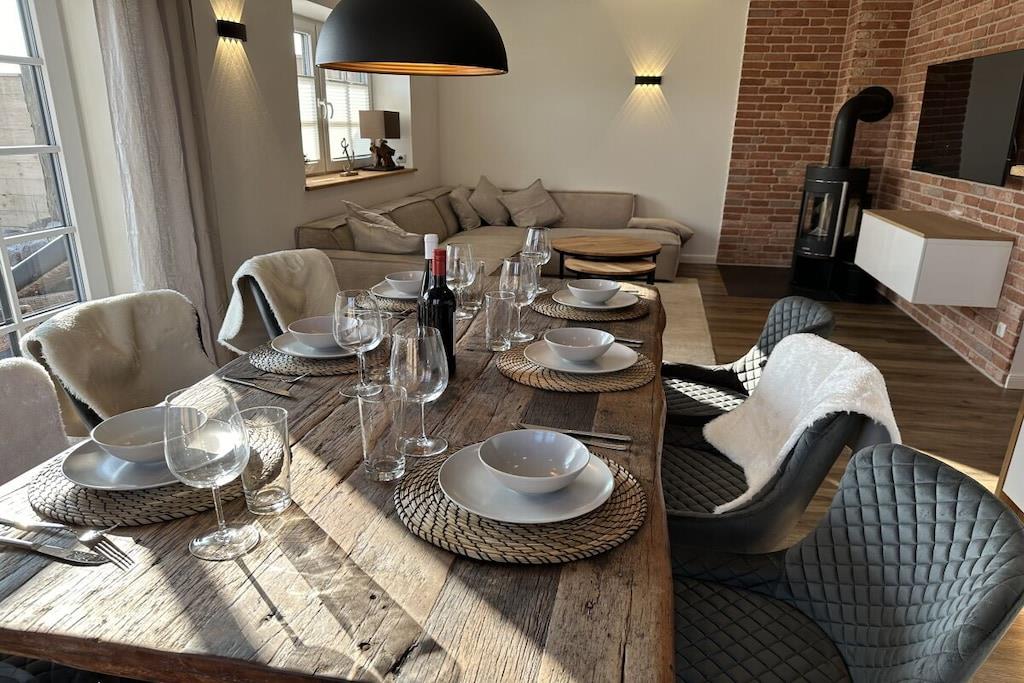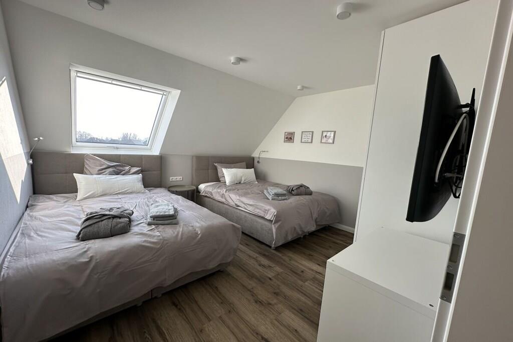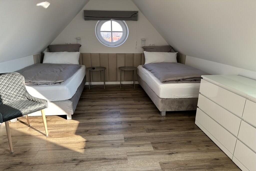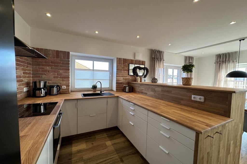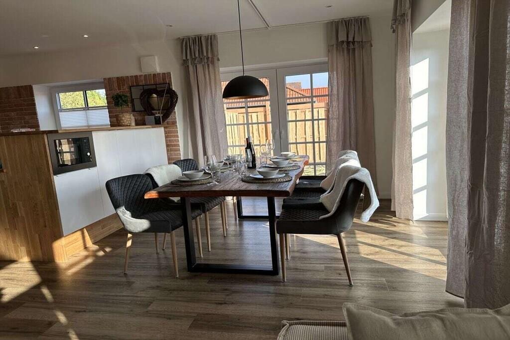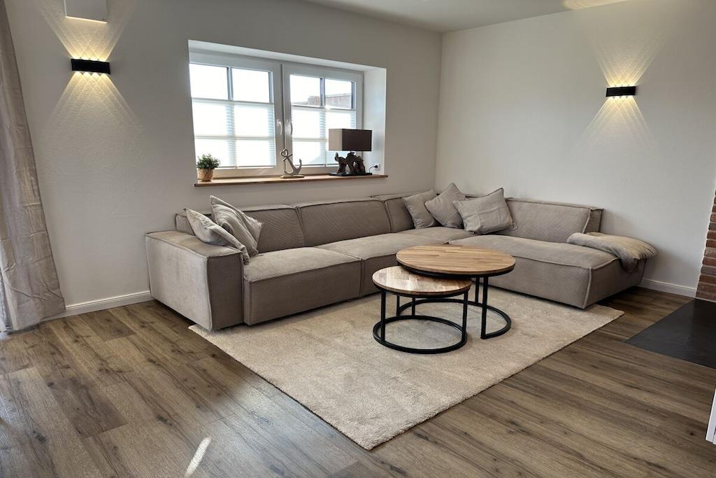 Willkommen in unseren Ferienhaus "Landhuus" in Tönning. Das Doppelhaus wurde im Jahr 2023 errichtet und mit liebevoller Hingabe eingerichtet, um Ihnen auf je 110 Quadratmetern Platz für 1-6 Personen einen unvergesslichen Urlaub nahe der Nordsee zu bieten. Der wunderbar lichtdurchflutete Wohnraum des Ferienhauses schafft eine behagliche Atmosphäre für gemeinsame Stunden mit Familie, dem Partner oder Freunden. Das einladende Sofa lädt zum Entspannen ein, der Esstisch bietet Platz für gesellige Mahlzeiten, und die voll ausgestattete Küche ermöglicht es Ihnen, kulinarische Köstlichkeiten zuzubereiten. Das „Landhuus“ heißt nicht nur Menschen herzlich willkommen, sondern auch Ihre vierbeinigen Begleiter, da Haustiere hier gerne gesehen sind. Die Weitläufigkeit des "Landhuus" zeigt sich ebenfalls im Außenbereich. Auf der großzügigen Terrasse mit dem dazugehörigen Garten erwartet Sie eine behagliche Sitzecke, ideal, um die letzten Sonnenstrahlen des Tages zu genießen. Ein vorhandener Grill lädt zu entspannten Abenden im Freien ein. Das Ferienhaus verfügt über insgesamt drei Schlafzimmer, jeweils ausgestattet mit einem hochwertigen Boxspringbett, sowie ein Zimmer mit zwei Einzelbetten. Im dritten Stock befinden sich zwei Einzelbetten, die idealerweise zu einem Doppelbett umgestaltet werden können. Bei uns finden Sie den erholsamen Schlaf, den Sie während Ihres Urlaubs an der Nordseeküste benötigen. Im Erdgeschoss befindet sich ein Badezimmer mit einer bodengleichen Dusche, während sich das zweite Badezimmer im ersten Stock mit einer Dusche und einer freistehenden Badewanne auszeichnet. Zusätzlich steht Ihnen eine großzügige Sauna zur Verfügung, um erholsame Stunden zu verbringen. Darüber hinaus haben Sie ab Ostern 2024 die Möglichkeit, optional das identische Ferienhaus Eiderhuus für eine Anreise mit 12 Personen zu buchen, sofern verfügbar. Bitte haben Sie Verständinis, dass bei einer Buchung unter 5 Tagen Zusatzkosten anfallen können. In Tönning wird eine Kurabgabe erhoben. Die Kurabgabe beträgt je Tag in der Zeit vom 15. Mai bis 30. September 2,20 EURO In der Zeit vom 01. April bis 14. Mai beträgt die Kurabgabe 0,90 EURO am Tag. Ermäßigungen für die Kurabgabe: Schüler und Auszubildende, die das 18. Lebensjahr vollendet haben, zahlen 0,90 EURO. Für Schwerbehinderte, die eine Behinderung von 50 % und mehr nachweisen, wird die Kurabgabe auf 50 % ermäßigt. Dies gilt auch für die erforderliche Begleitperson.