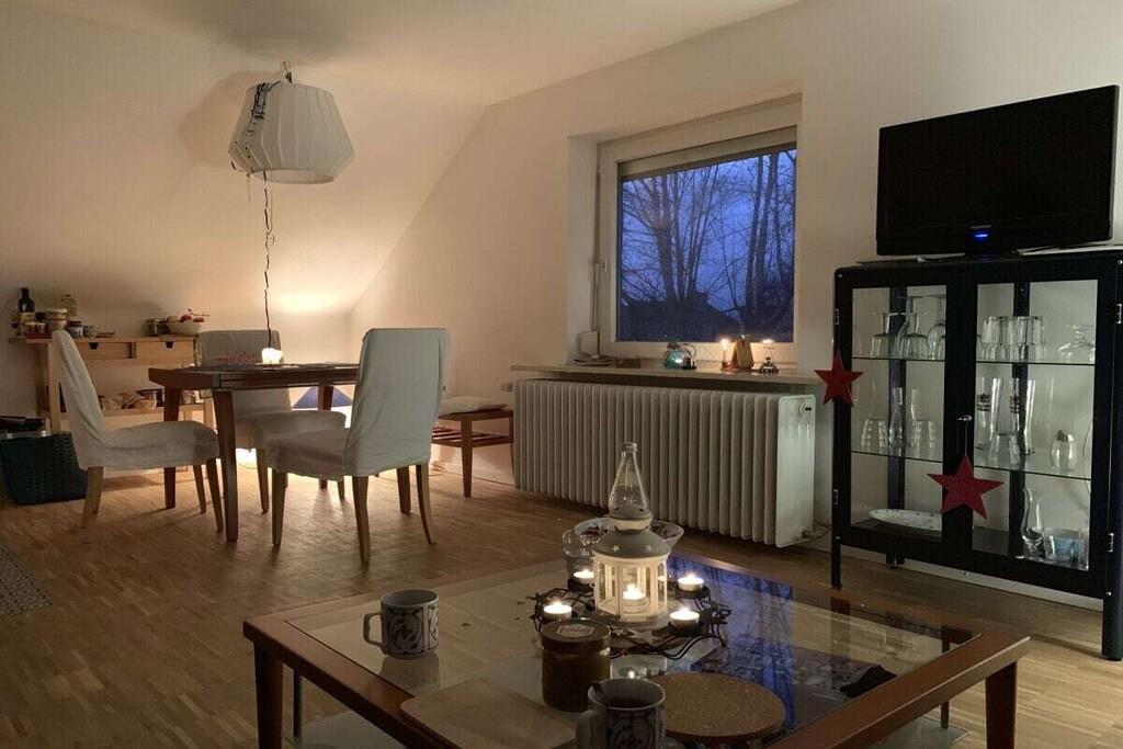 Gemütliche Ferienwohnung in Tönning mit Garten, offener Küche und Badewanne, ideal für erholsame Nordseeferien.