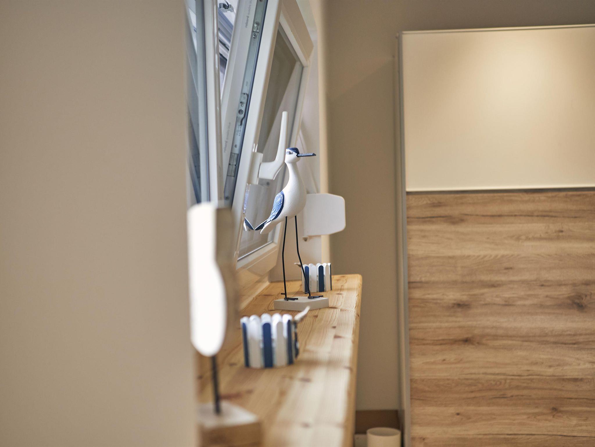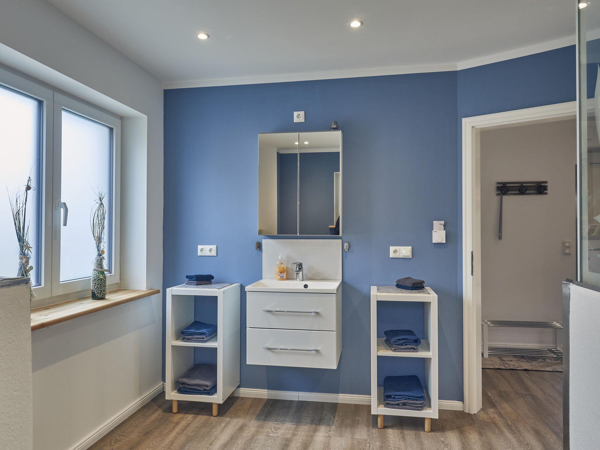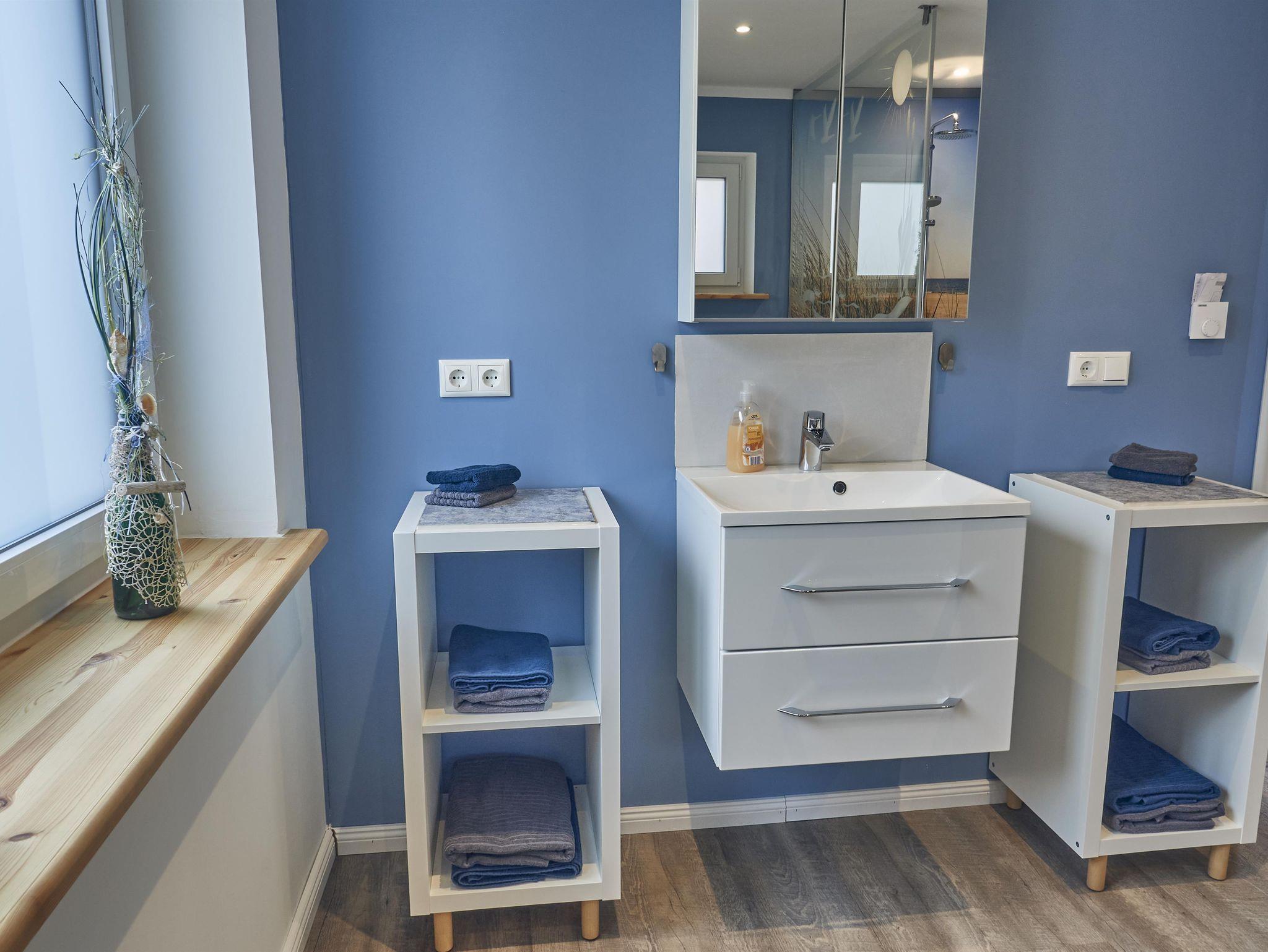 Im gemütlichen Schlafzimmer befindet sich ein Doppelbett (2,00x2,00m). Das Duschbad hat eine ebenerdige Dusche und viel Platz für Ihre Utensilien.