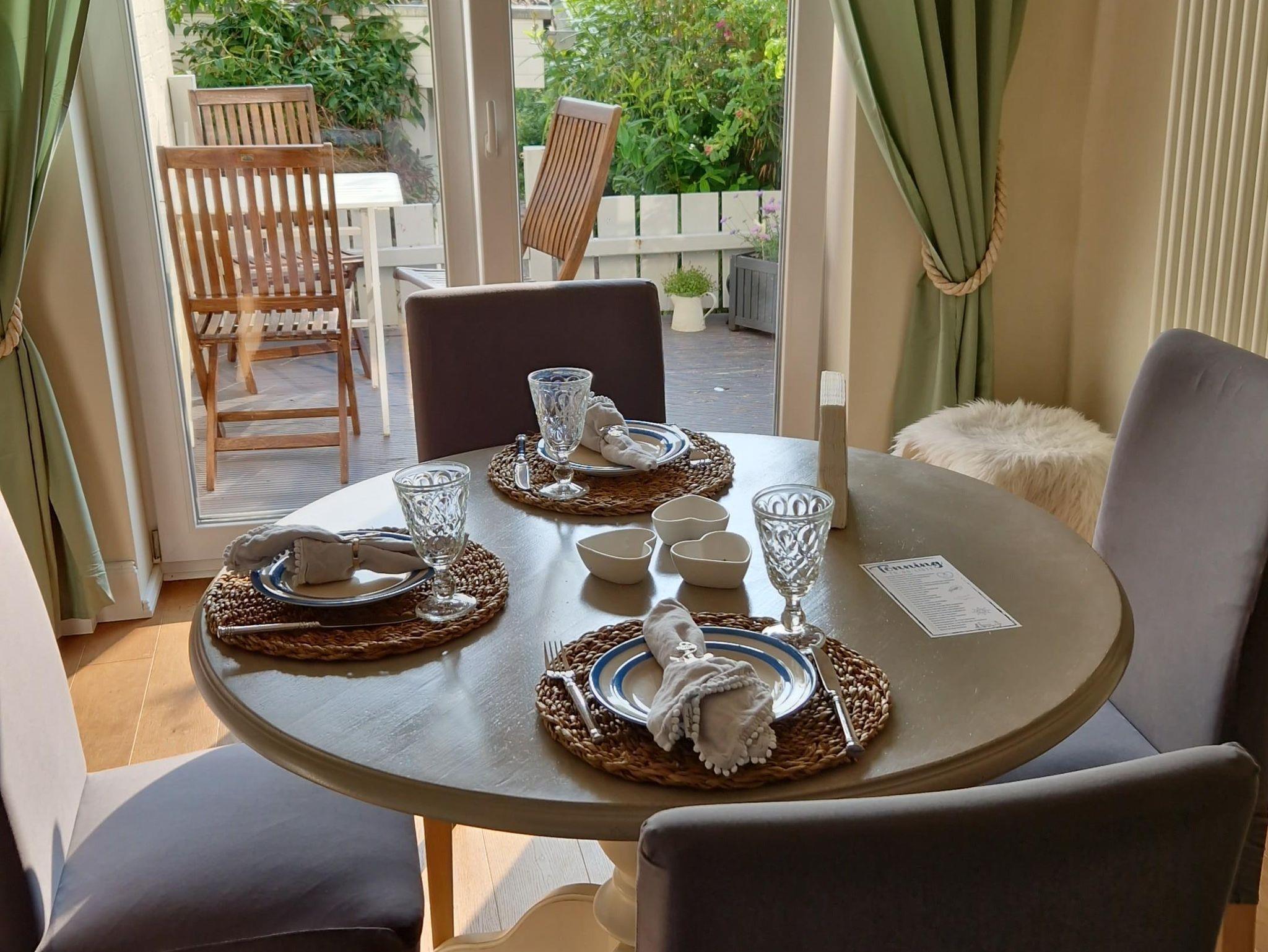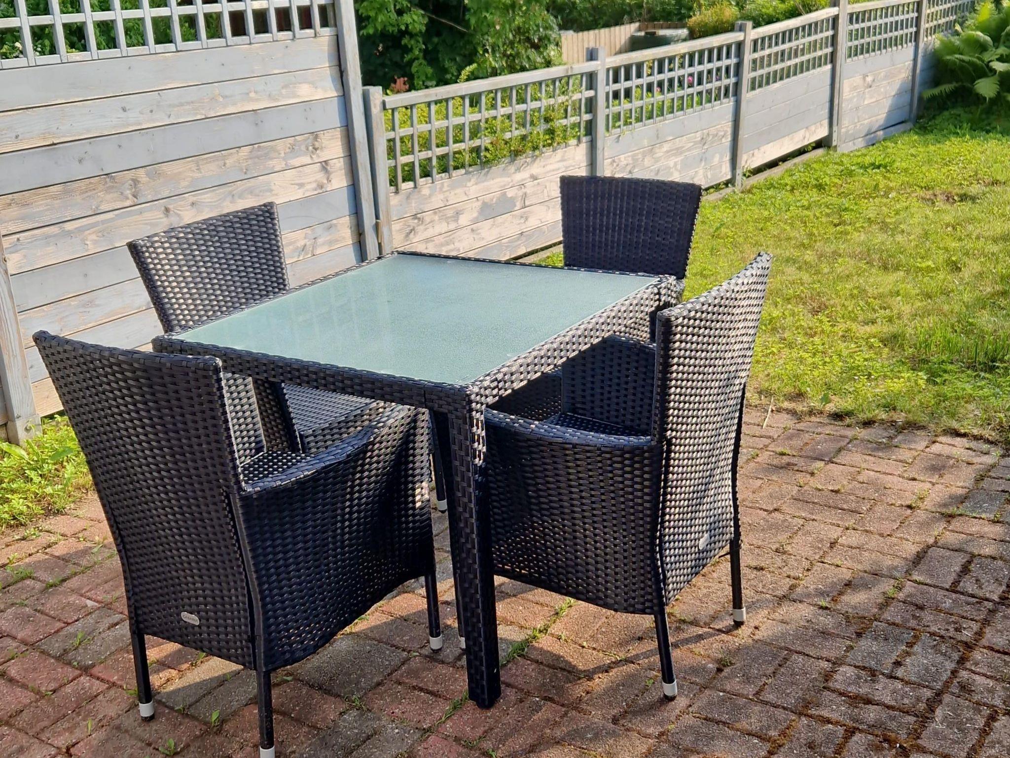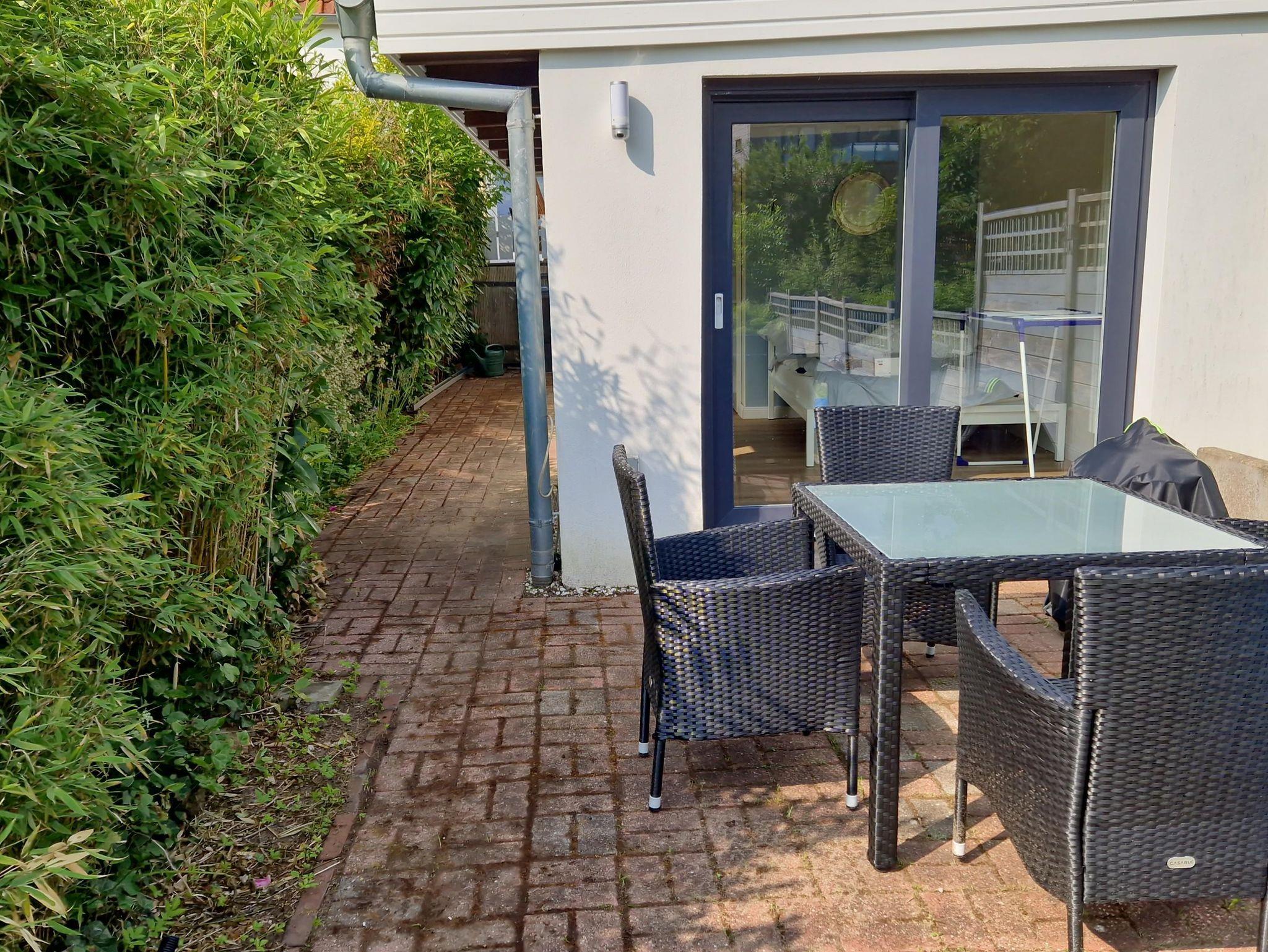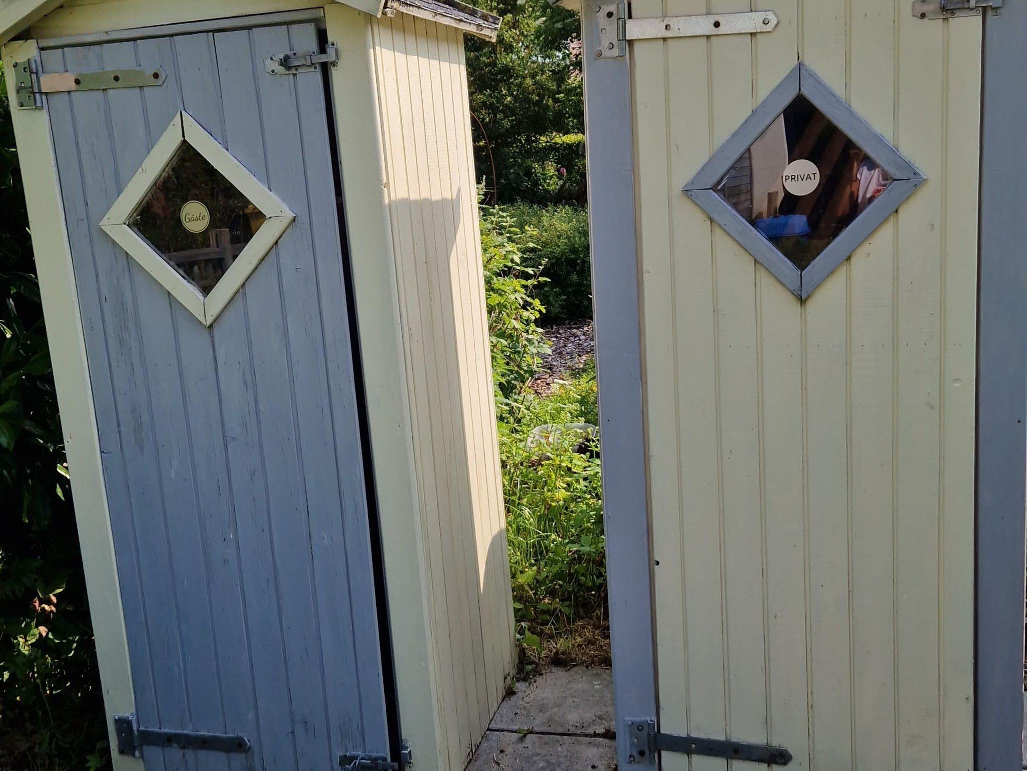 Die Morgensonne lädt zum Frühstücken auf der kleinen Terrasse hinter dem Haus ein. Die Ruhe kann man dort den ganzen Tag genießen.
