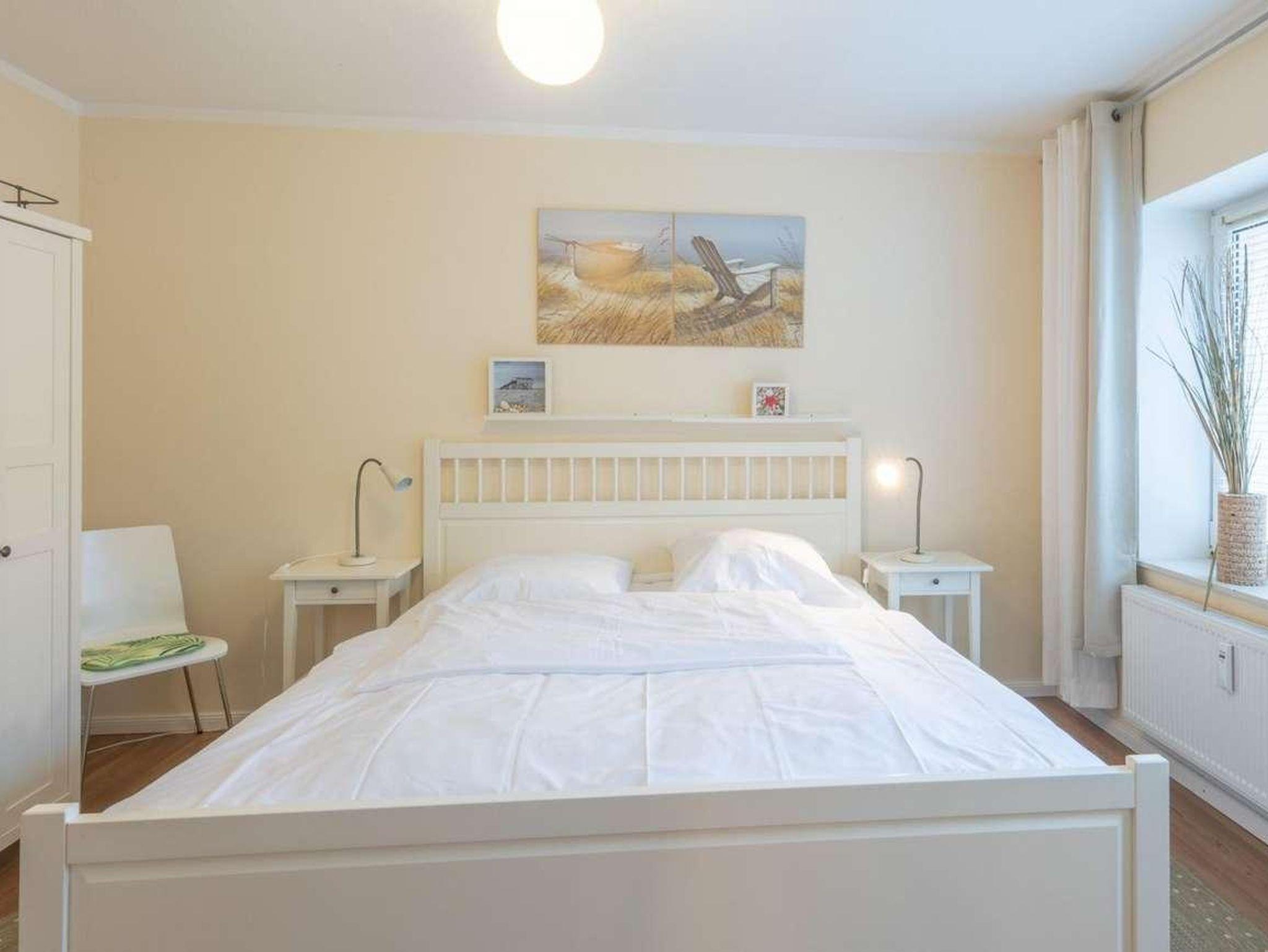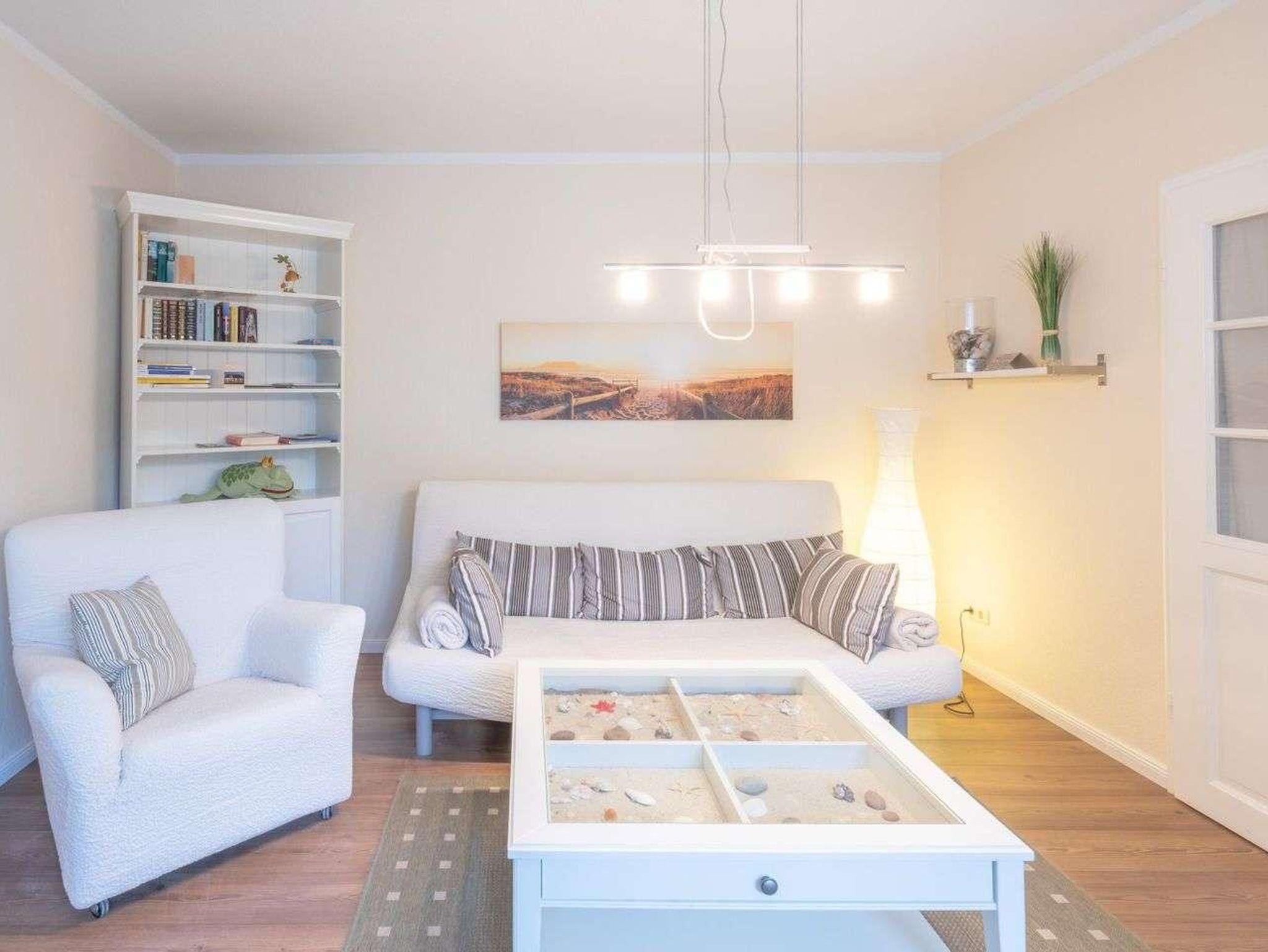 Die Wohnung ist mit allem eingerichtet, was Sie für einen schönen Aufenthalt an der Nordsee benötigen: ein Schlafzimmer mit einem Doppelbett (180 x 200), ein weiteres Schlafzimmer mit einem Doppelbett (140 x 200), eine gut ausgestattete Küche mit 4-Platten-Kochfeld, Geschirrspülmaschine, Backofen, Waschmaschine, Mikrowelle, Kaffeemaschine (Filtergröße 4). Das Wohnzimmer verfügt über ein bequemes Schlafsofa, einen Flachbild-TV und einen DVD-Player, CD-Player mit Radio. Das moderne Badezimmer ist mit einer ebenerdigen Dusche, WC und einem Waschbecken eingerichtet.