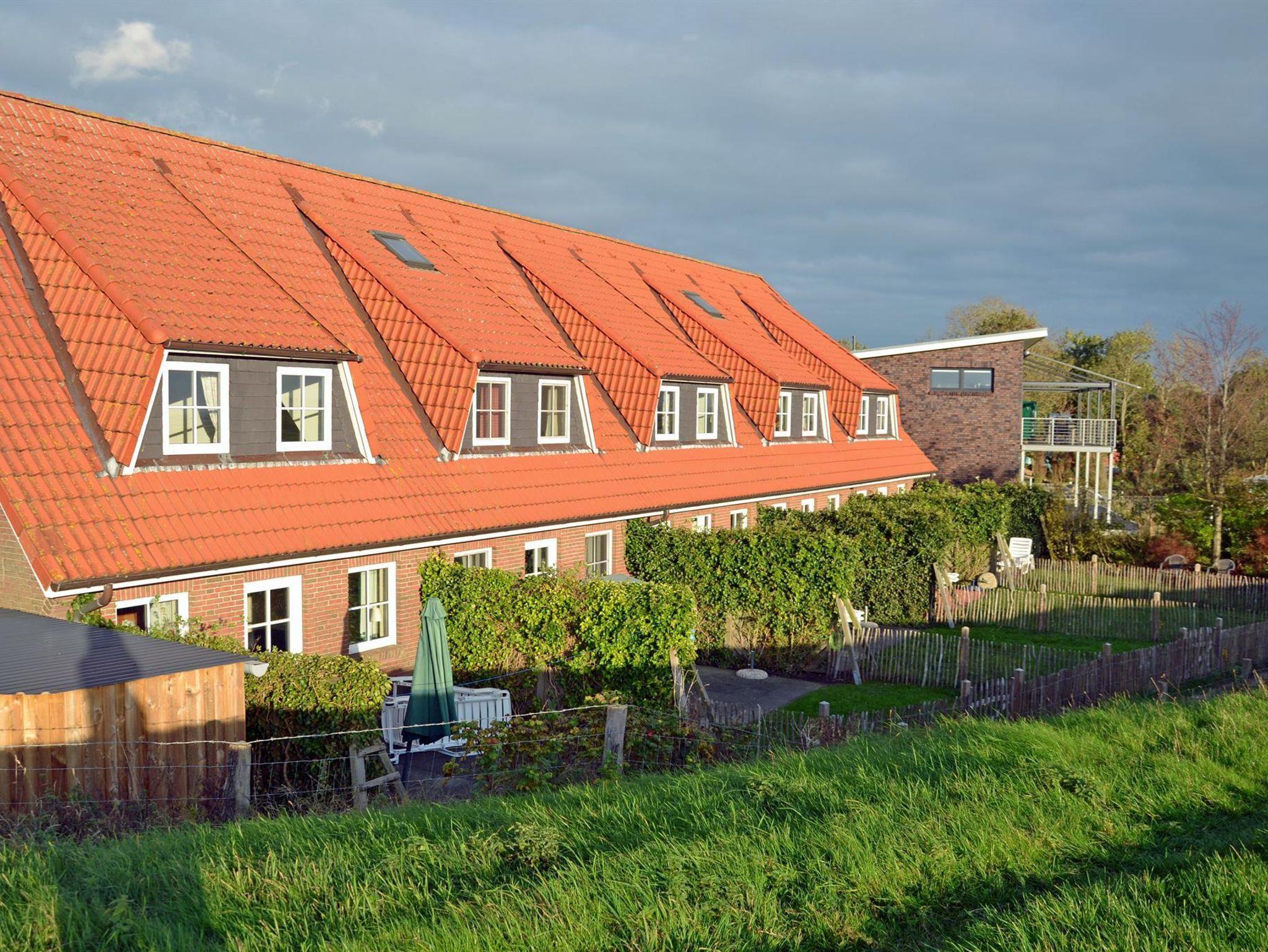 Das Grundstück mit Veranda und Spielwiese ist auch über einen privaten Zugangsweg vom Deich her begehbar und eingezäunt. Ideal zum streßfreien Aufenthalt mit kleinen Kindern.