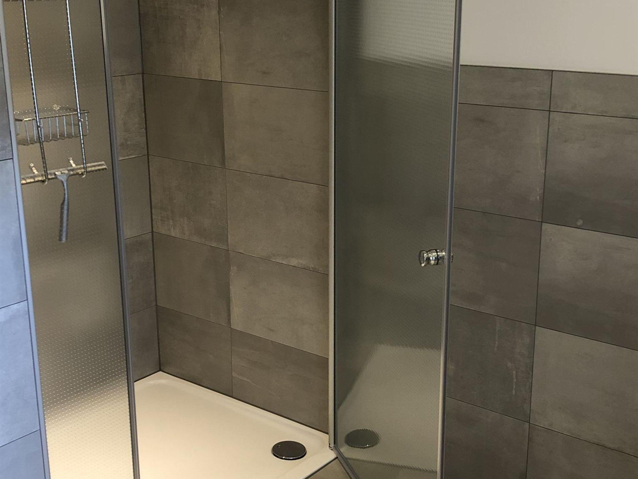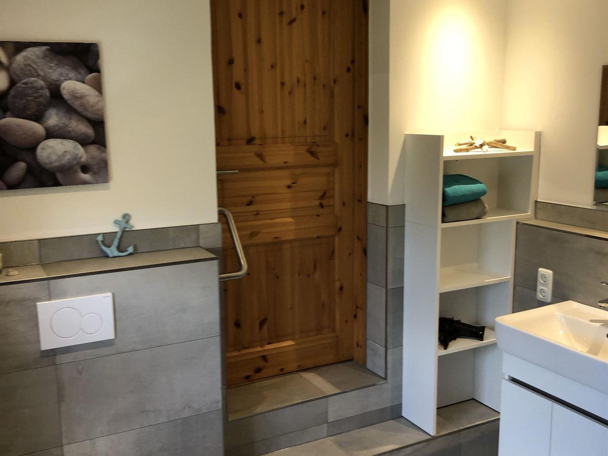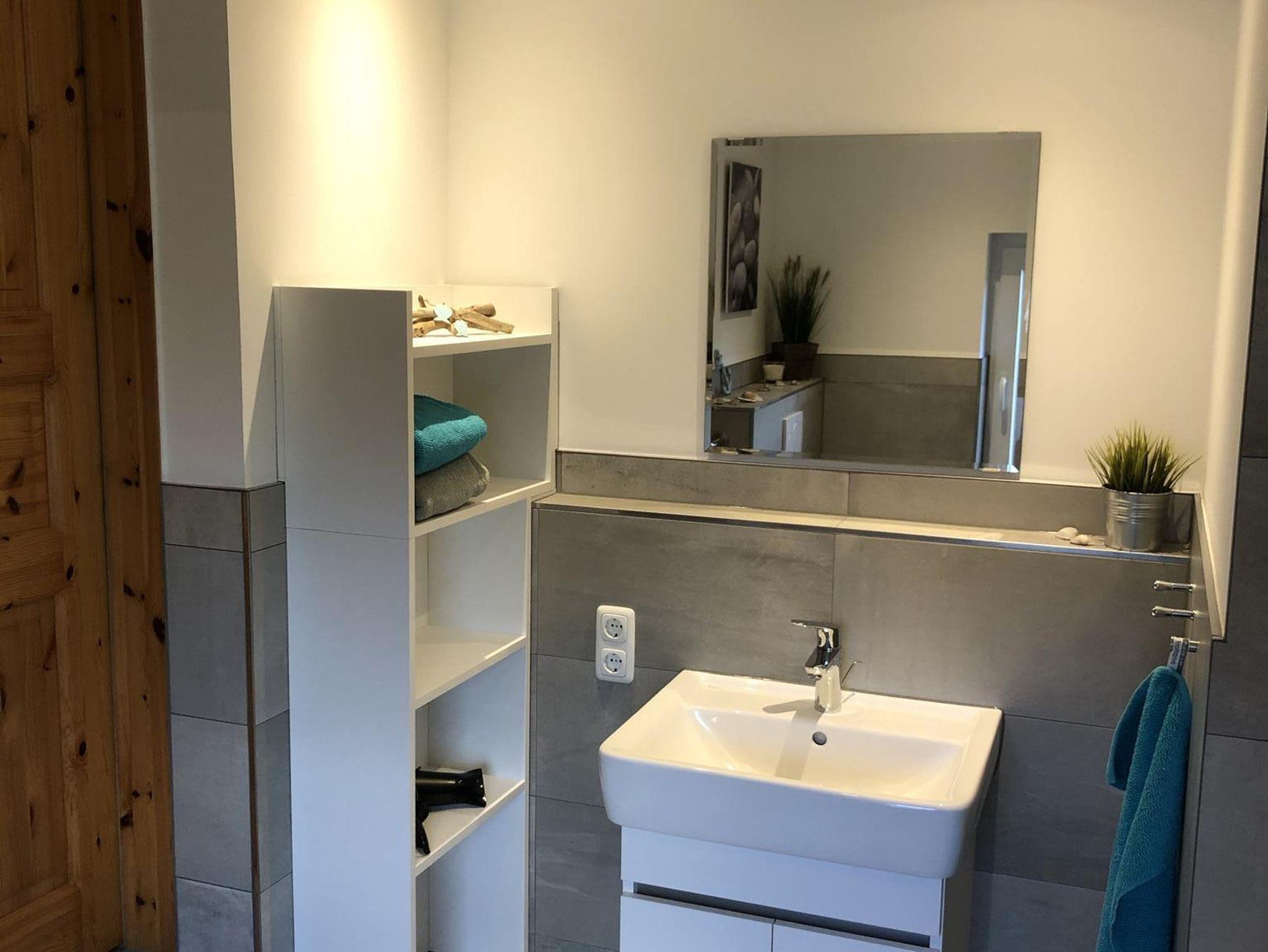 Vom Wohnbereich erreichen Sie (über 2 Stufen) das geräumige Duschbad mit Außenfenster.
