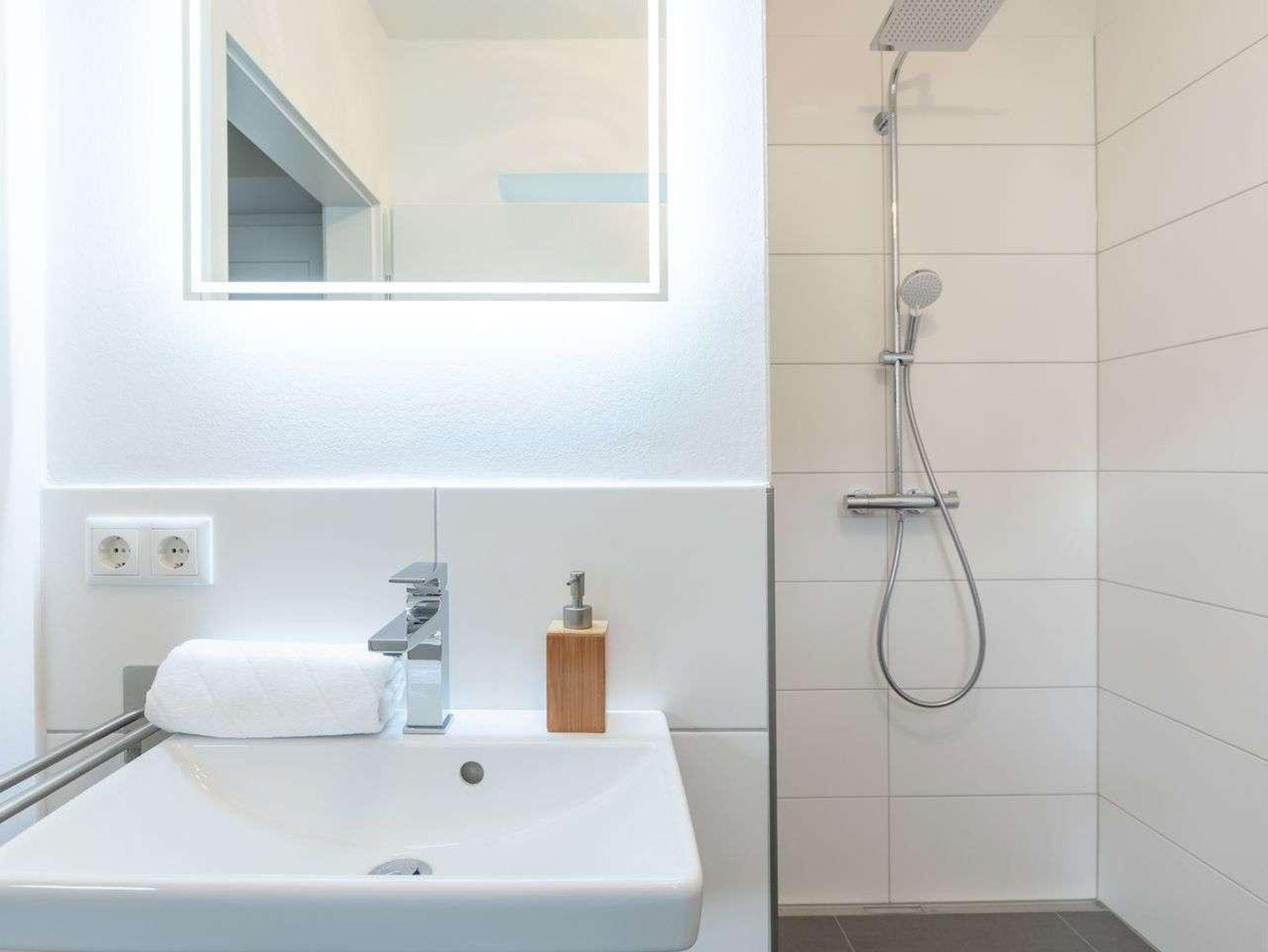 Ein Highlight ist das großzügige Badezimmer mit ebenerdiger Dusche und WC.