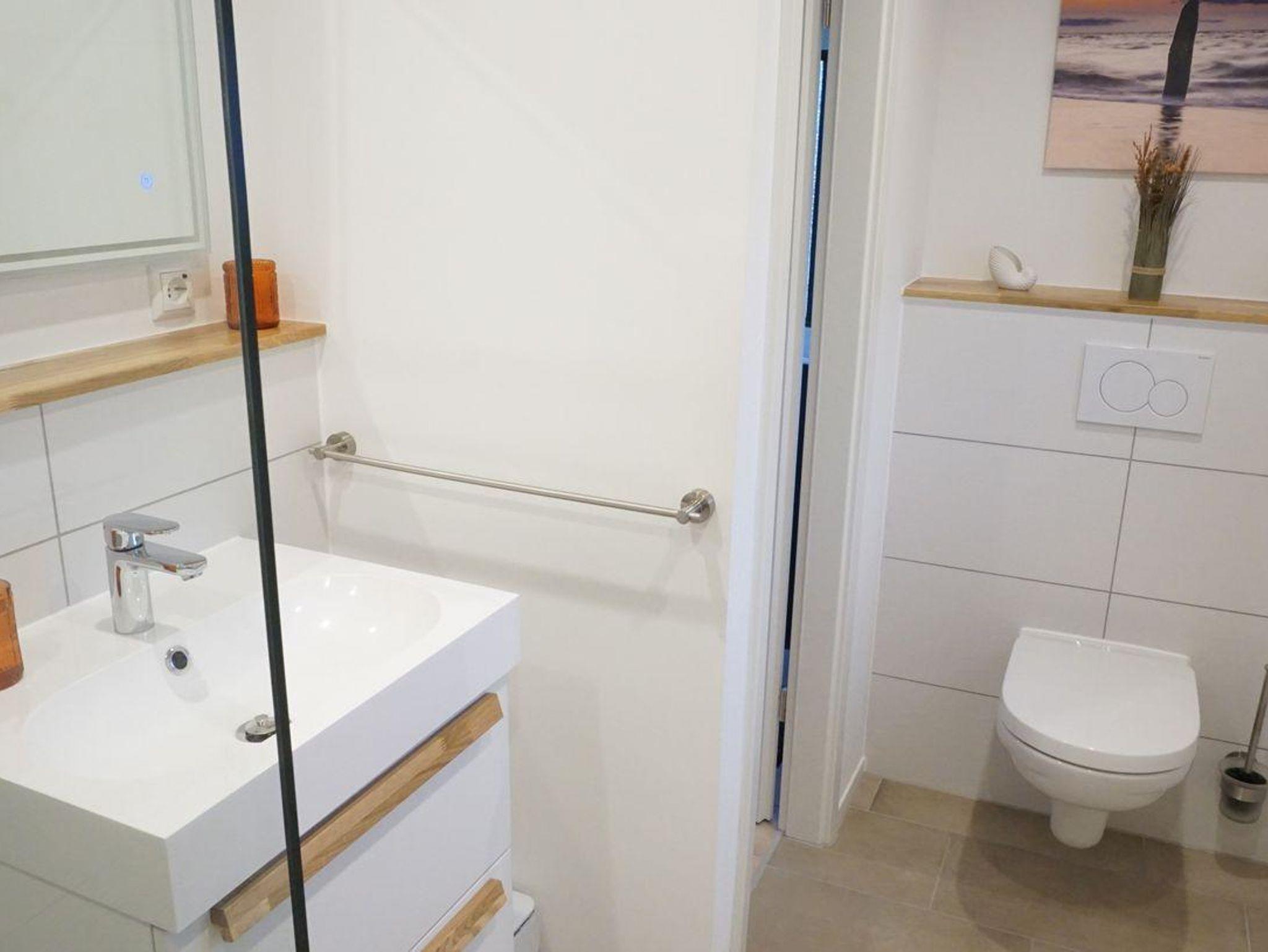 Das Erdgeschoss bietet ein modernes Duschbad mit Fußbodenheizung und ein Gäste-WC (WC, Spiegel,Waschbecken) im Obergeschoss sorgt für Komfort. Freuen Sie sich auf zwei Doppelbettschlafzimmer und ein Schlafzimmer mit 2 Einzelbetten, jeweils mit begehbaren Kleiderschränken.