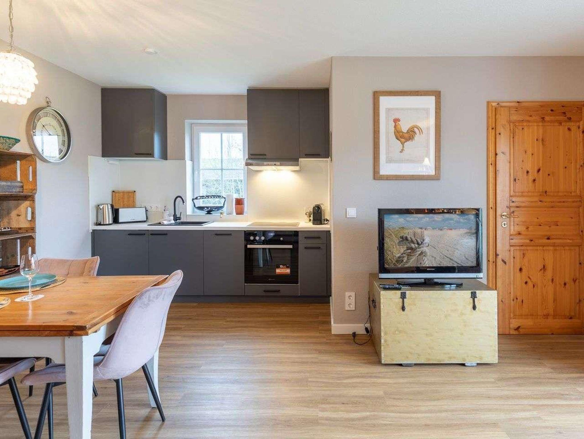 Im Wohnzimmer gibt es einen gemütlichen Sitzbereich mit einem Biedermeier Sofa und Sessel sowie einen Flachbildfernseher für gemütliche Abendstunden. Brettspiele stehen Ihnen für Spiel und Spaß zur Verfügung, ebenso wie eine Auswahl an Büchern für entspannte Momente. Der Fernseher empfängt nur öffentlich-rechtliche Fernsehsender und kann durch den Fire TV Stick, auch über ein Amazon oder Netflix-Konto genutzt werden. Kostenloses Wi-Fi mit 4G für Remote-Arbeit oder Streaming Ihre Lieblingsfilme ist im Preis inbegriffen, ebenso wie kostenlose Parkplätze auf dem Gelände.