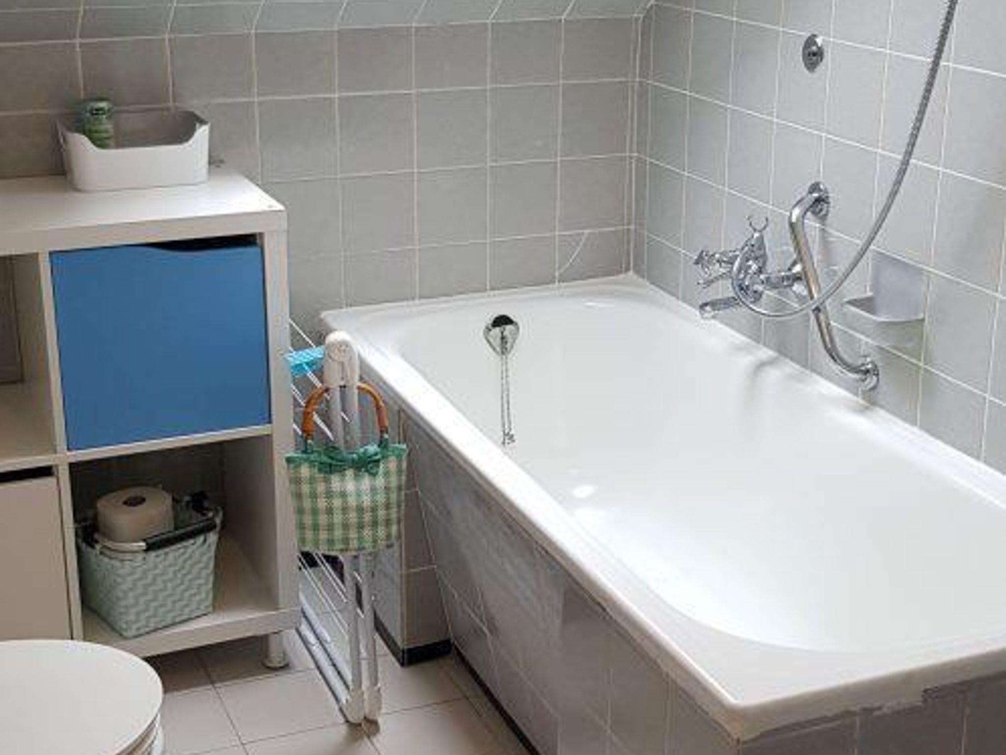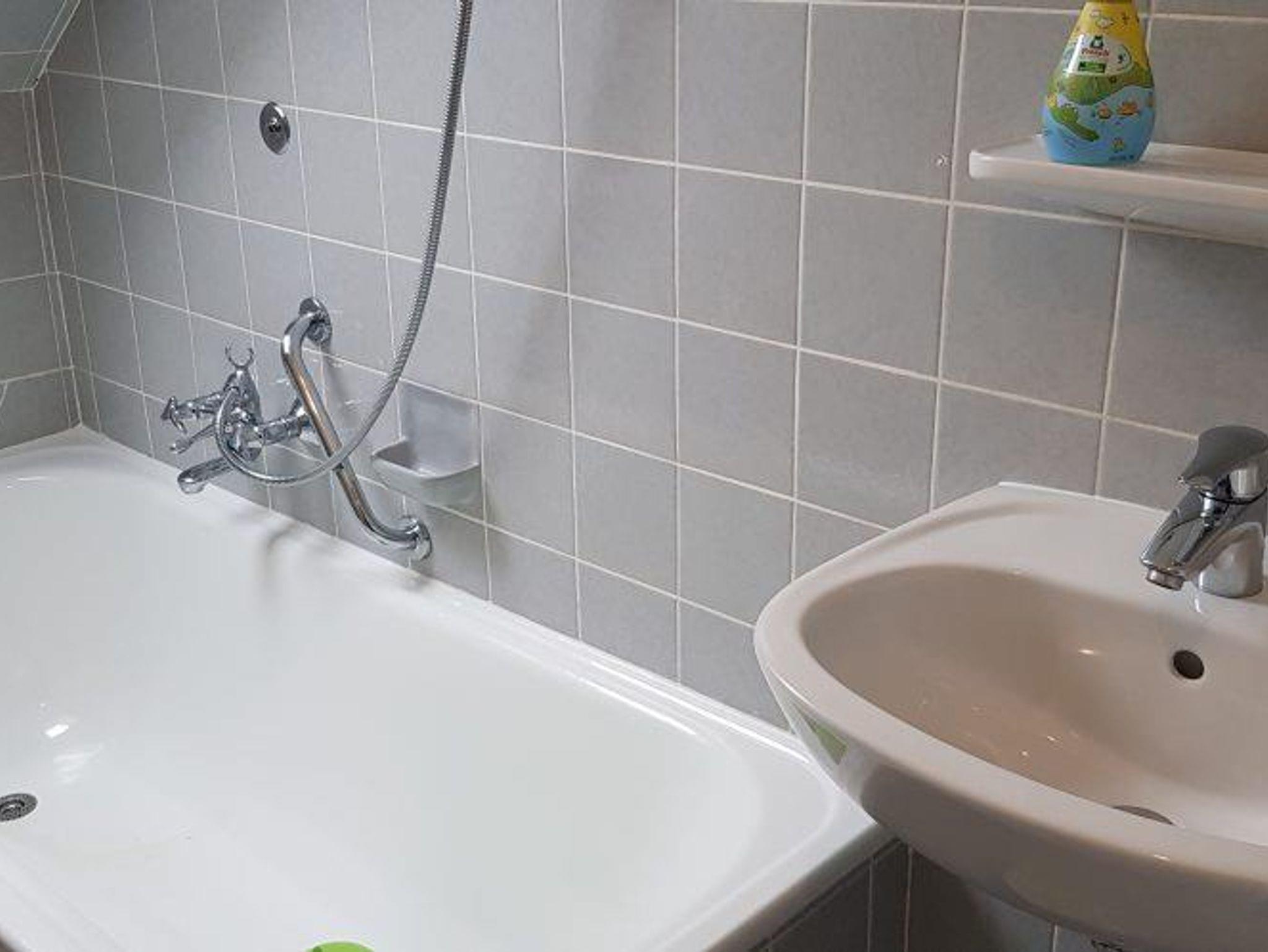 Badezimmer mit Badewanne, Waschbecken und WC