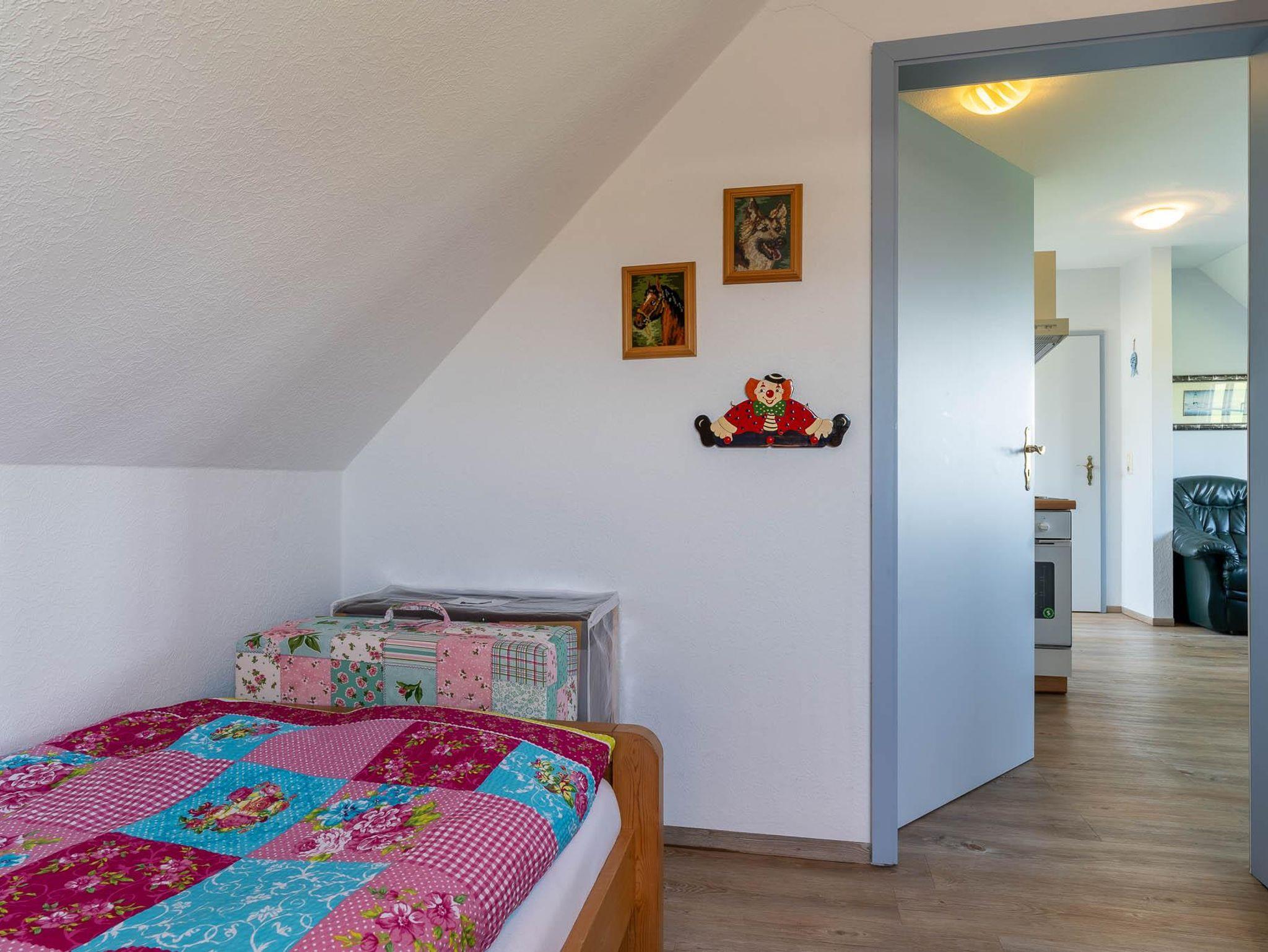 Die Wohnung hat zwei Schlafräume. Das erste hat ein französisches Bett und das zweite ein Einzelbett. Im Zimmer mit dem Einzelbett wäre nach Absprache auch die Möglichkeit eine zusätzliche Person unterzubringen.