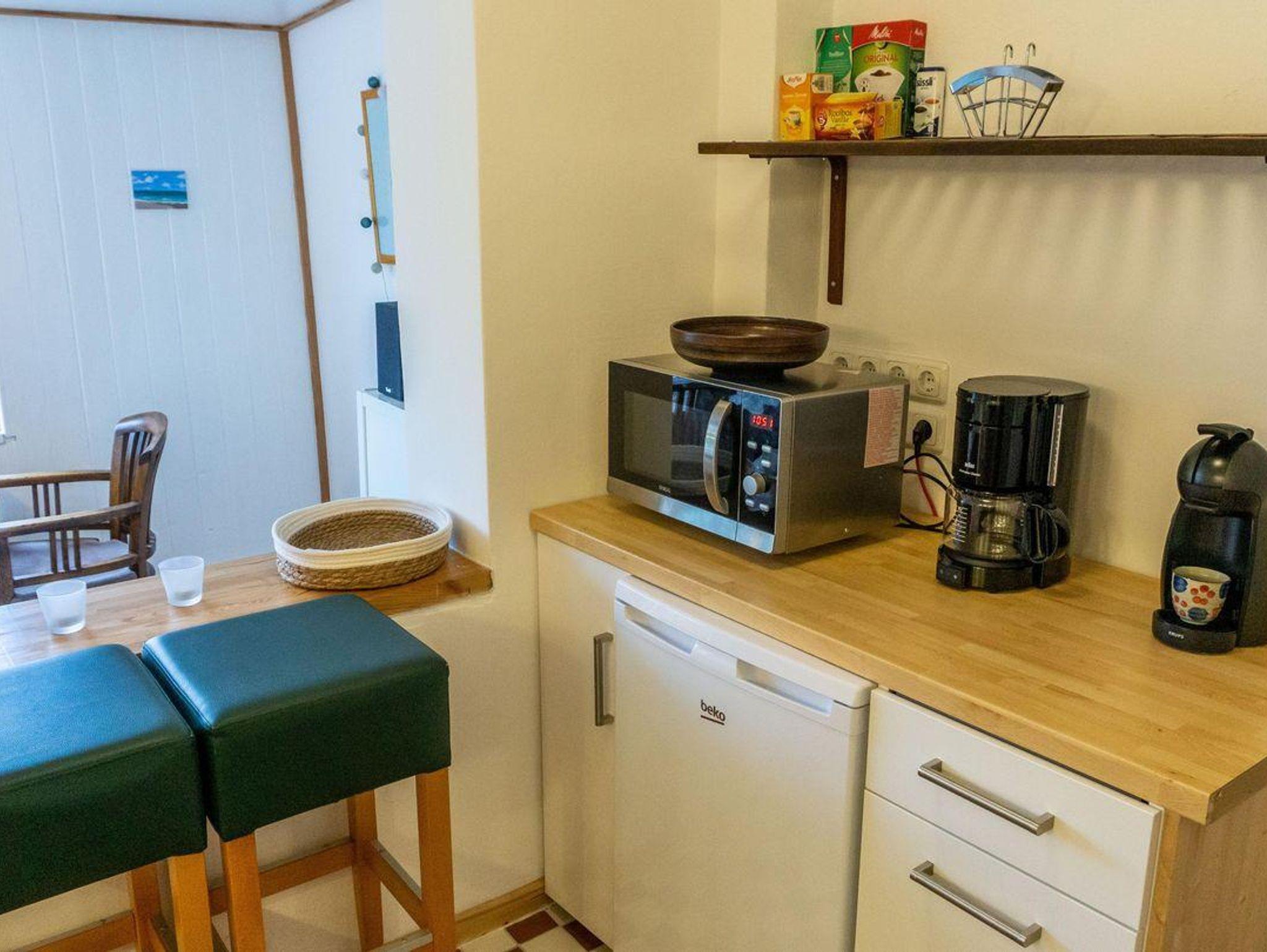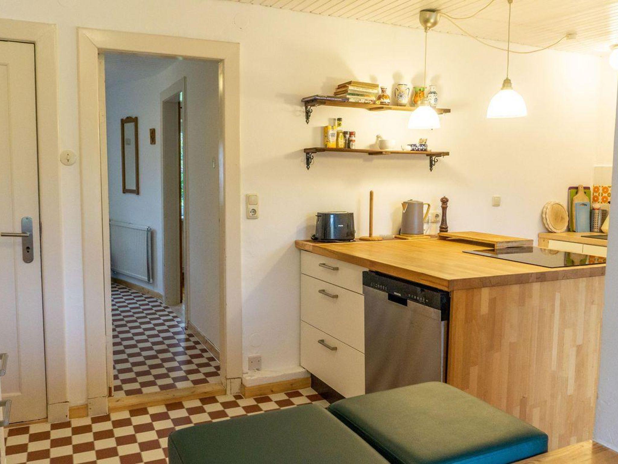 Die geschlossene Küche mit Essbereich ist komplett ausgestattet – Ceranherd, Backofen, Kühlschrank (mit Gefrierfach), Mikrowelle, Spülmaschine, Wasserkocher, Mixer, Toaster, Kaffeemaschine, sowie umfangreiche Küchenutensilien stehen zu Ihrer Verfügung. Für das gemeinsame Essen bietet der separate Essbereich ein angenehmes Ambiente.