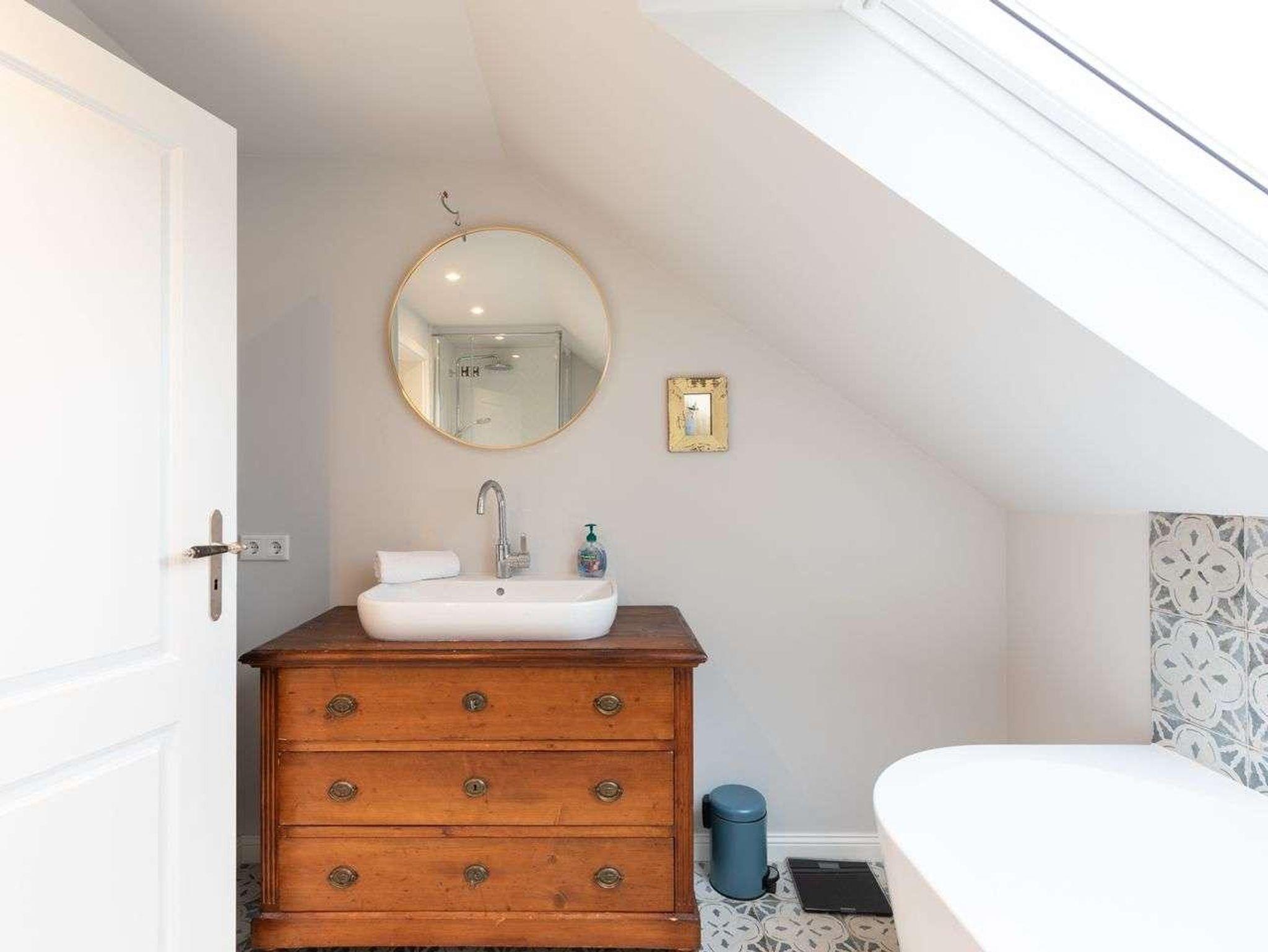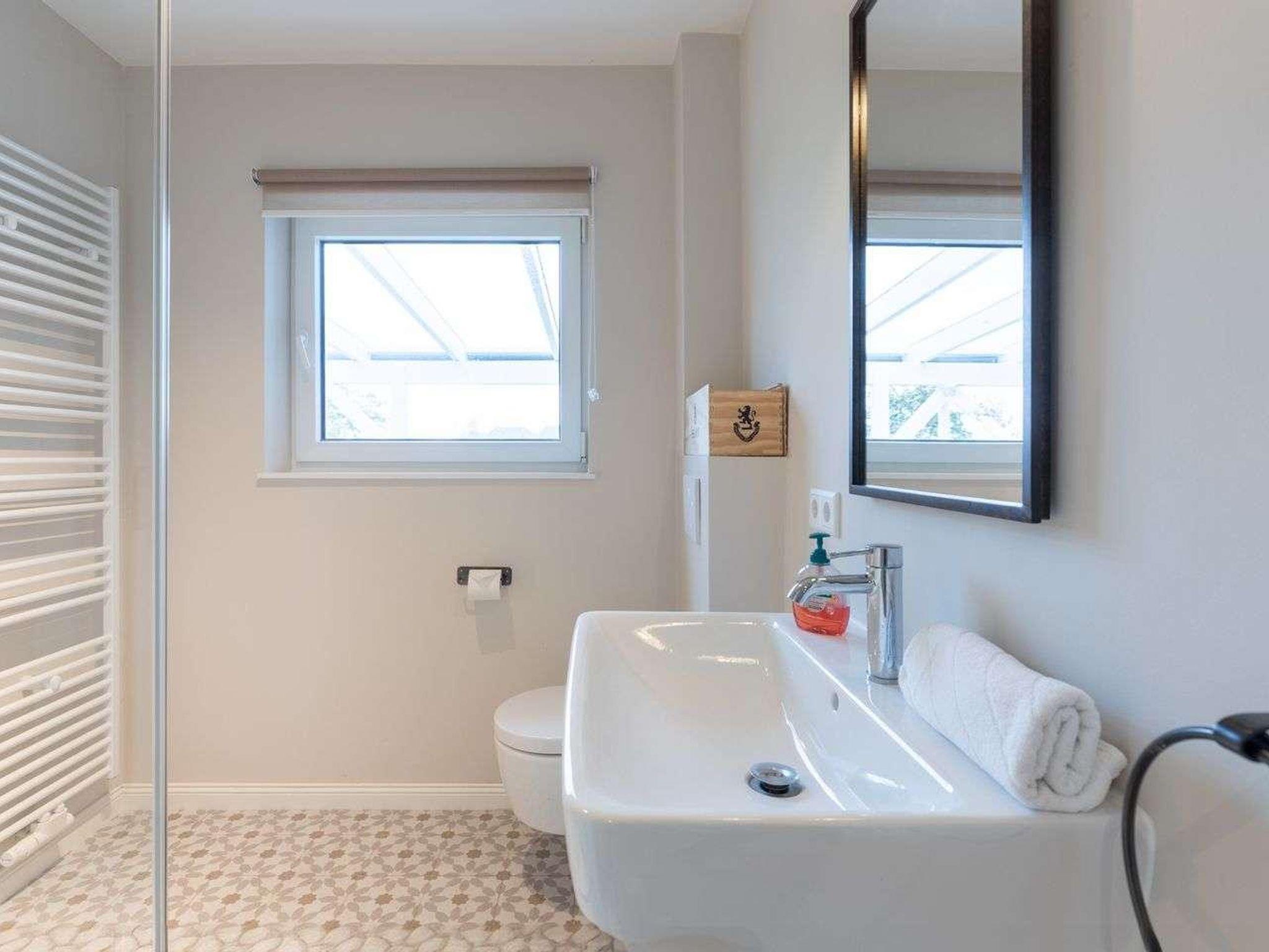 Das Badezimmer im Erdgeschoss ist mit einer modernen Dusche und WC ausgestattet, das Bad im Obergeschoss bietet neben einer Dusche auch eine Badewanne für ein entspannendes Wohlfühlbad nach einem erlebnisreichen Urlaubstag.