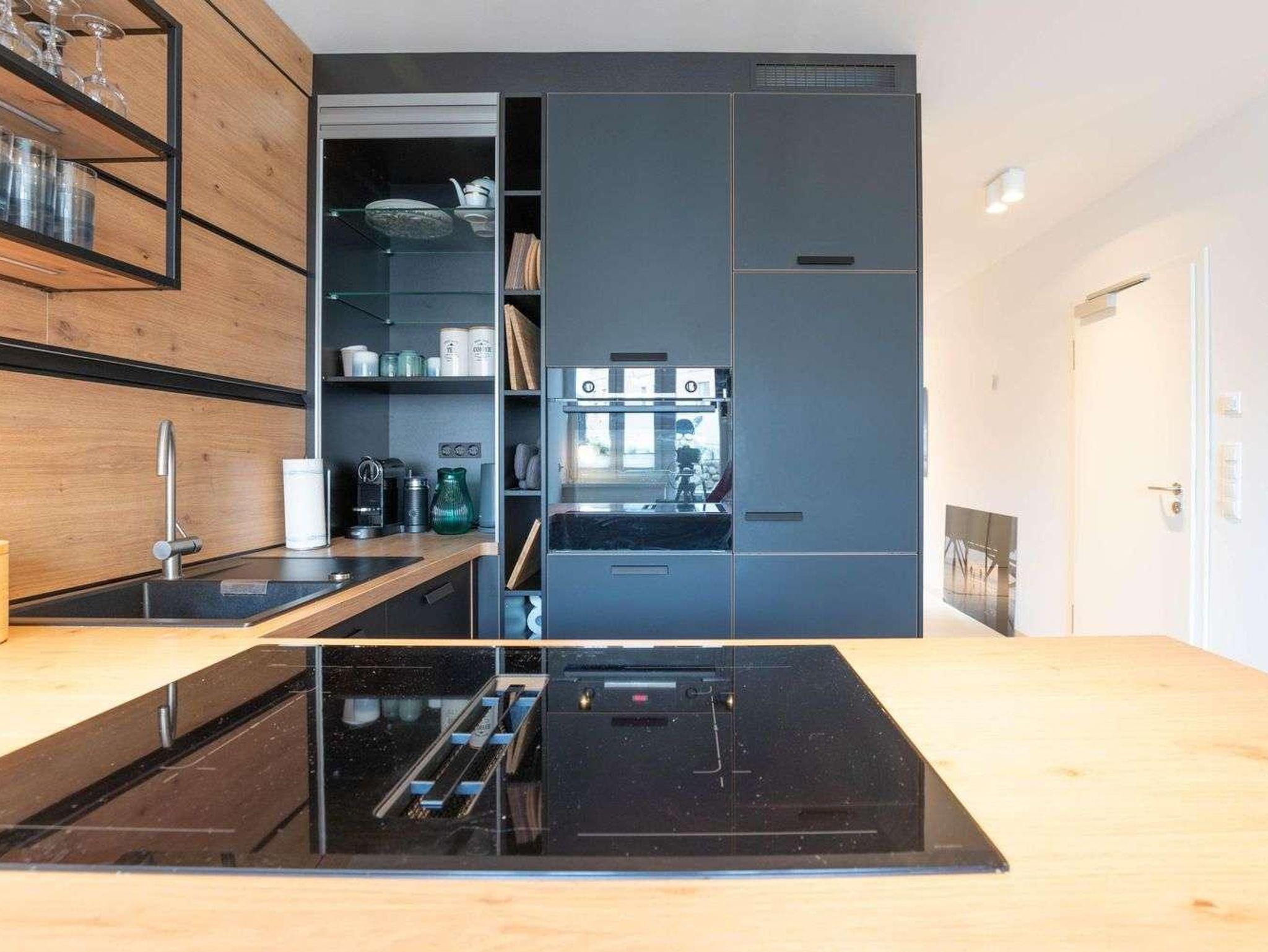 Die offene, sehr gut ausgestattete Küche bietet Ihnen einen Induktionsherd mit Dunstabzugshaube, eine Geschirrspülmaschine, eine Mikrowelle, einen großen Kühlschrank mit Gefrierfach, einen Backofen, eine Nespresso-Kapselmaschine, Wasserkocher und ein Toaster.
