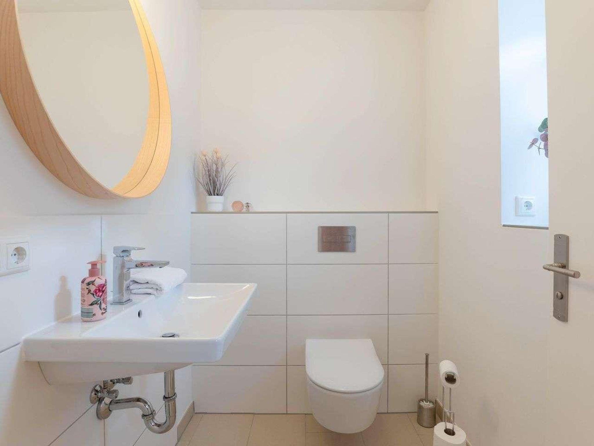 Das Gäste-WC und der Hauswirtschaftsraum mit Waschmaschine und Trockner runden das Bild ab.