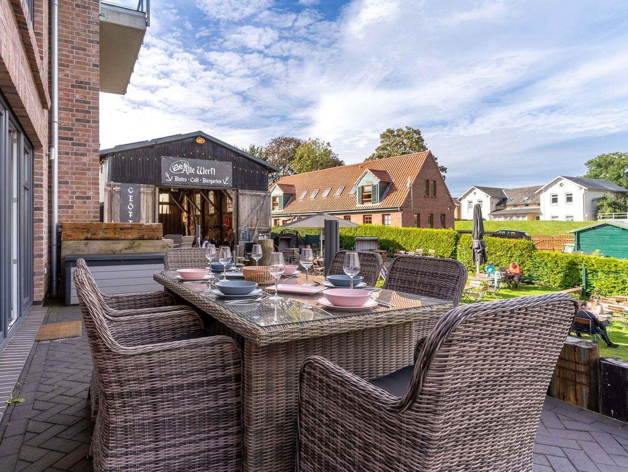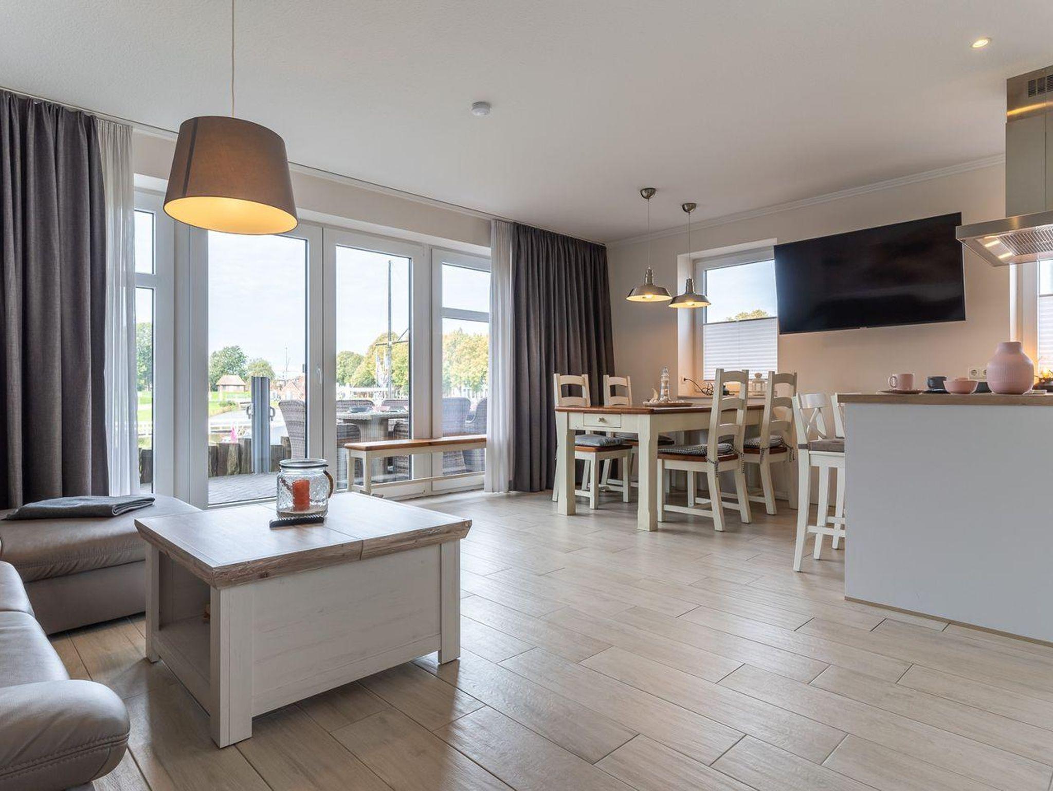 Erleben Sie das exklusive Ferienhaus Poller 25 am malerischen Hafen von Tönning mit Sauna und herrlichem Meerblick.