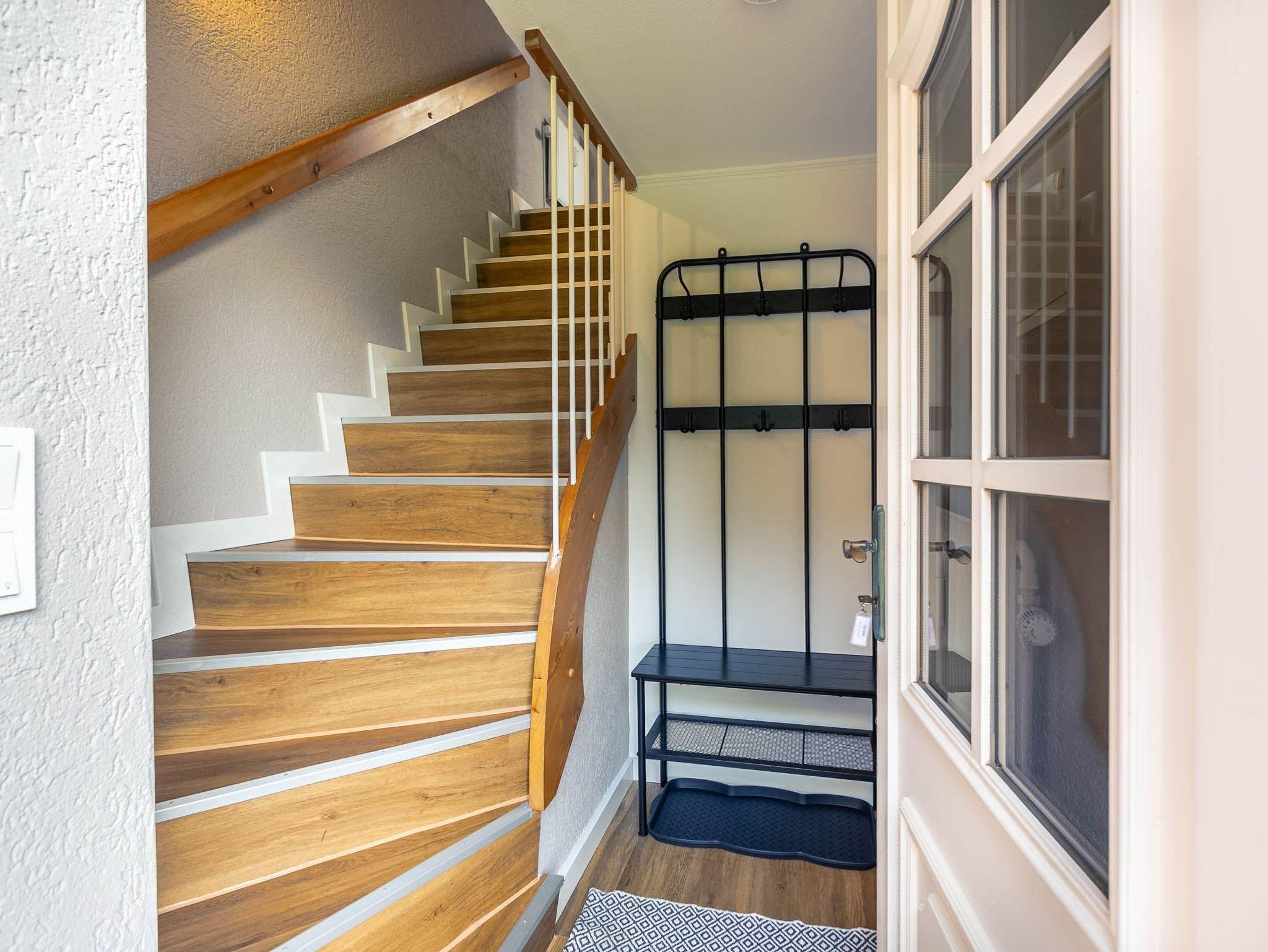 Der Flur mit Garderobe und Schuhbank befindet sich im Eingangsbereich im EG.