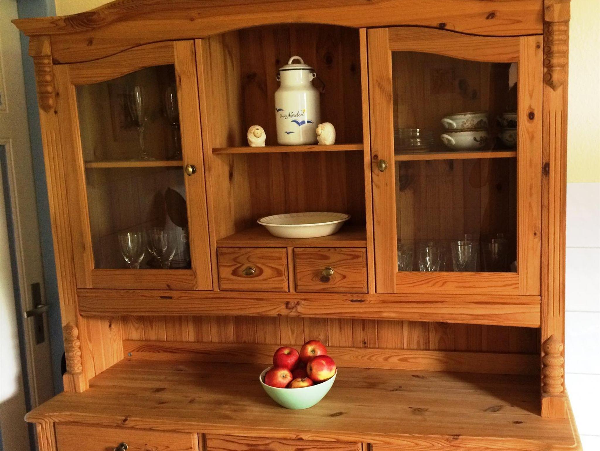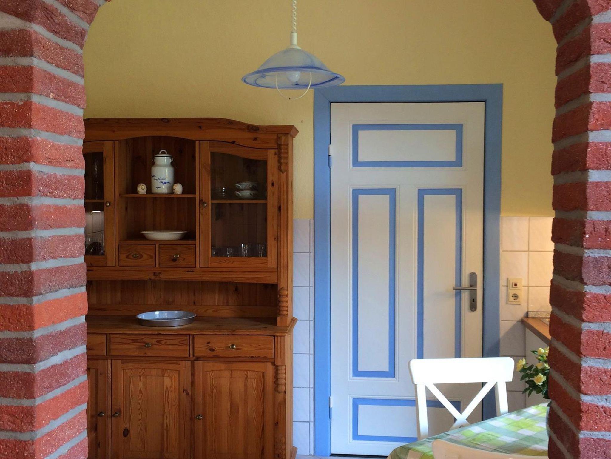 Durch den rustikal gemauerten Backsteinbogen gelangen Sie in die freundliche Küche. Dort stehen für Sie ein Herd mit Ceranfeld und Backofen, sowie ein Kühlschrank mit Gefrierfach und eine Geschirrspülmaschine bereit. Toaster, Kaffeemaschine, Wasser- und Eierkocher sorgen für ein entspanntes Urlaubsfrühstück. Des Weiteren stehen ein Rührgerät und ein Stabmixer zur Verfügung.