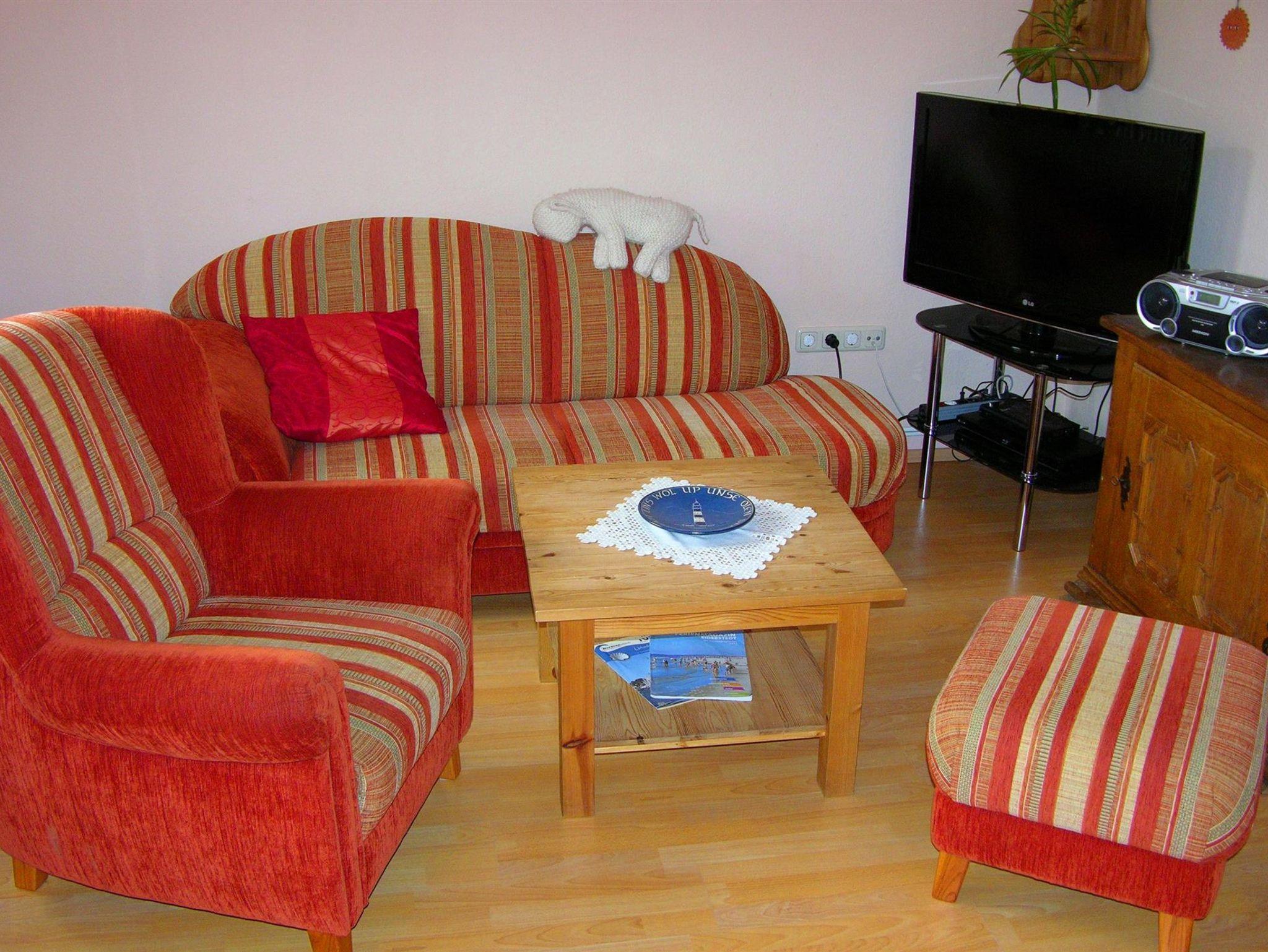 Sie erreichen Ihre Ferienwohnung durch einen separaten Eingang. Über die Sonnenterrasse gelangen Sie direkt in das lichtdurchflutete Wohnzimmer. Dort werden Sie von der gemütlichen Polstergarnitur und einer Medienecke mit großem Flachbildschirm, Blue-Ray-/DVD-Player und MP3-/CD-Stereo-Radiorecorder erwartet. In der antiken Anrichte finden Sie eine Auswahl an DVDs und Büchern und Spielen.