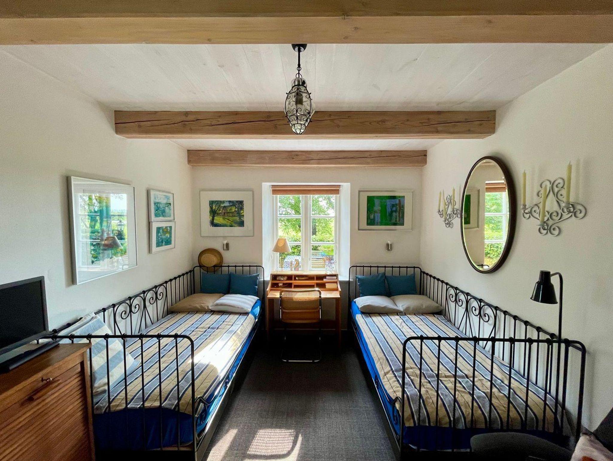 Das Ferienhaus verfügt über vier Zimmer, darunter drei gemütliche Schlafzimmer: Eins mit komfortablen Doppelbett (180x200), eins mit offener Galerie und Doppelbett (180x200) und eines mit zwei Einzelbetten (90x200) – ideal für Kinder oder Freunde. Zwei moderne Bäder sorgen für den nötigen Komfort: ein Duschbad im Erdgeschoss und ein großzügiges Vollbad im Obergeschoss, perfekt für eine entspannte Auszeit nach einem Tag am Meer.