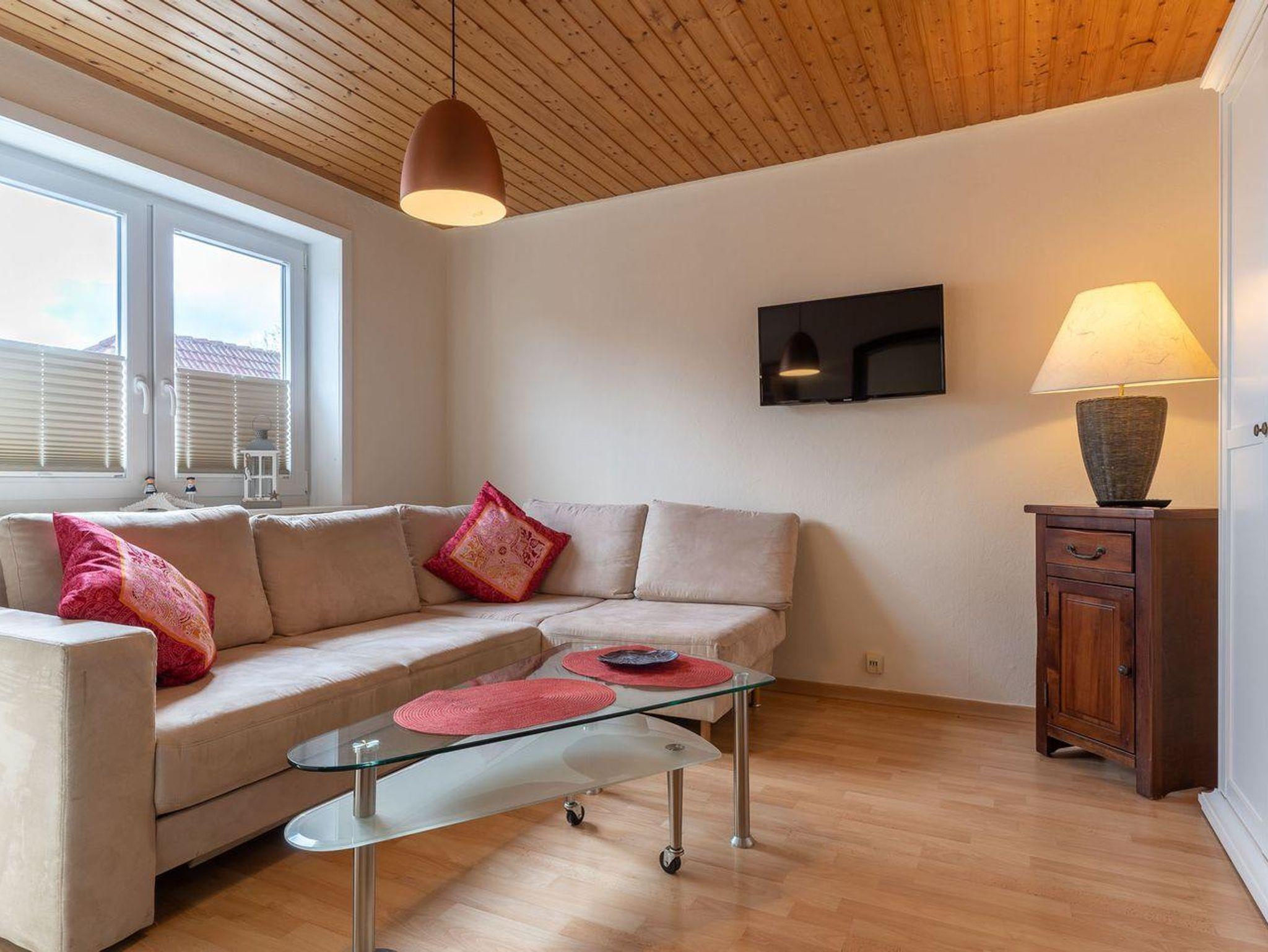 Das gemütliche Wohnzimmer lädt mit seinen bequemen Sofas und dem Flachbildfernseher zum Entspannen ein.