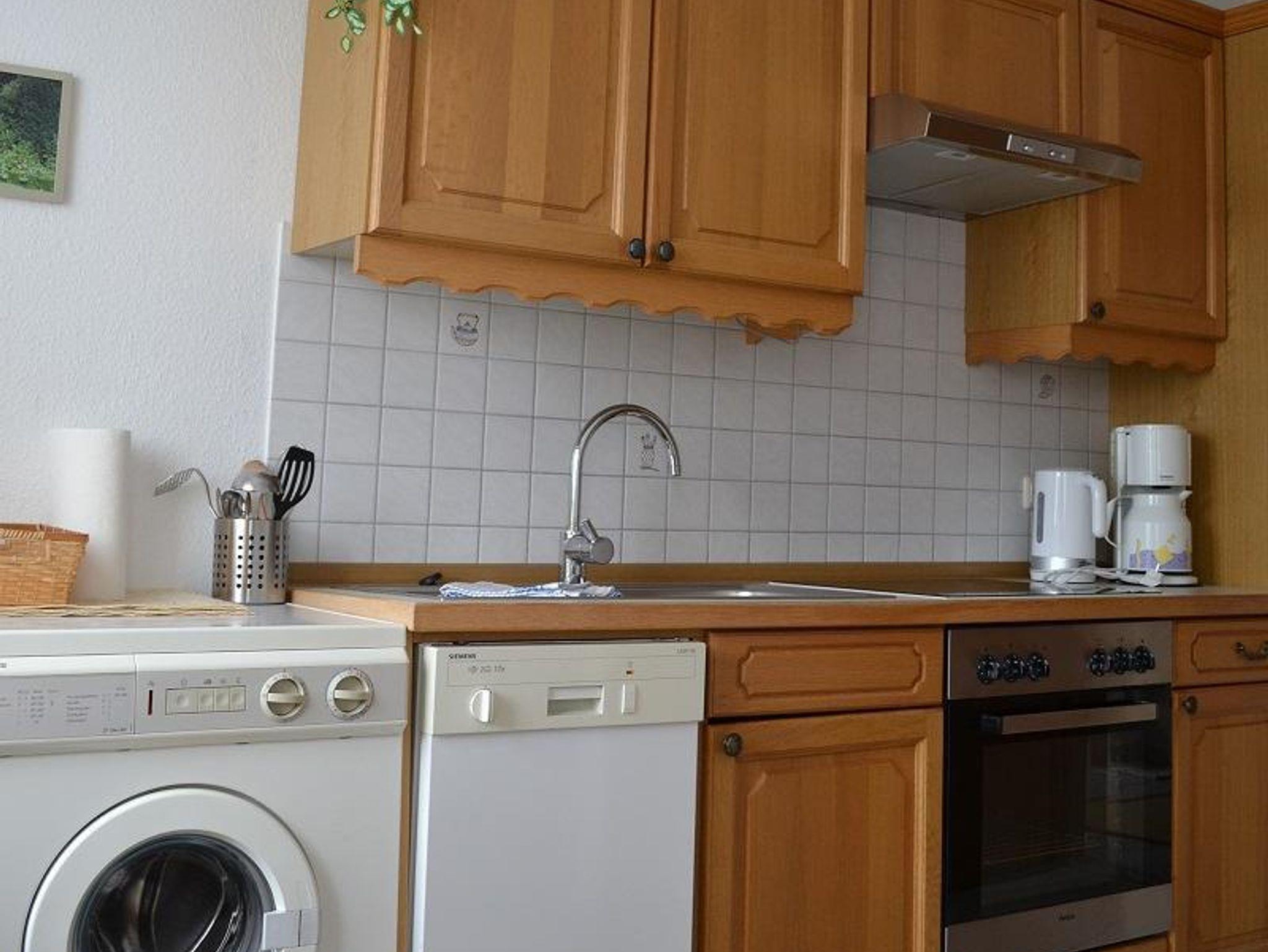 Im Erdgeschoss finden Sie ein Gäste-WC und eine komplett eingerichtete Küche, zu der neben dem E-Herd mit Ceranfeld und Backofen sowohl eine Kaffeemaschine und ein Wasserkocher als auch ein Geschirrspüler und eine Waschmaschine gehören. In der Küche befindet sich außerdem eine gemütliche Essecke.