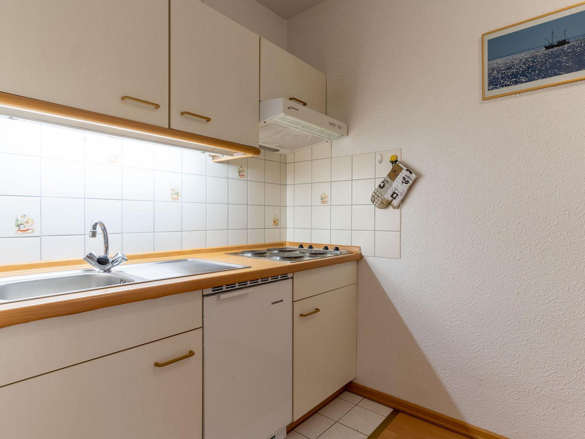 Es gibt einen Wohnraum mit Essecke und separater Küche.