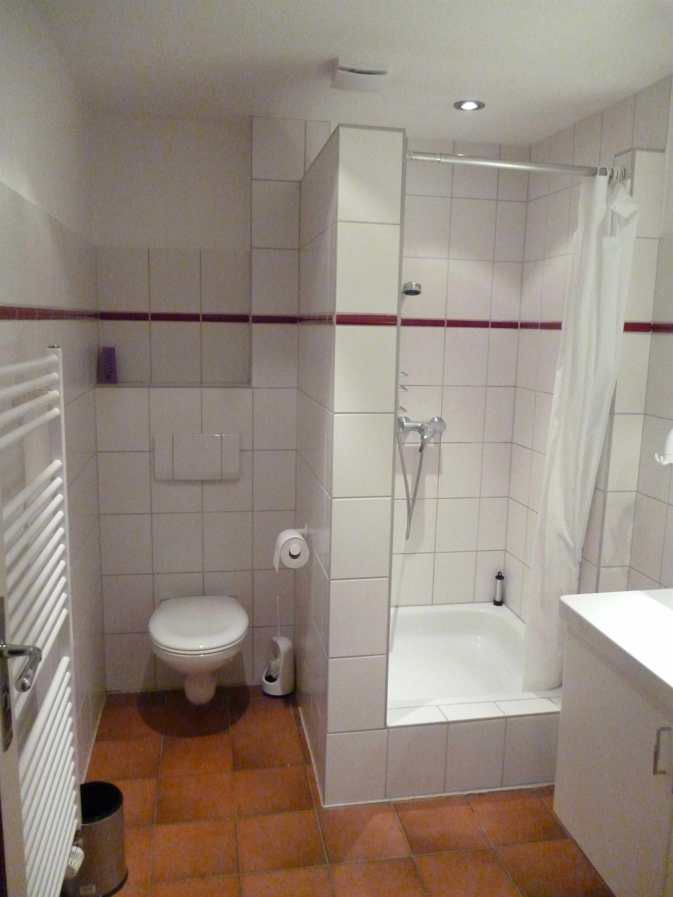 Das friesische Landhaus besitzt 2 Bäder mit Fußbodenheizung. Im Erdgeschoß-Bad steht eine Waschmaschine zur Verfügung.