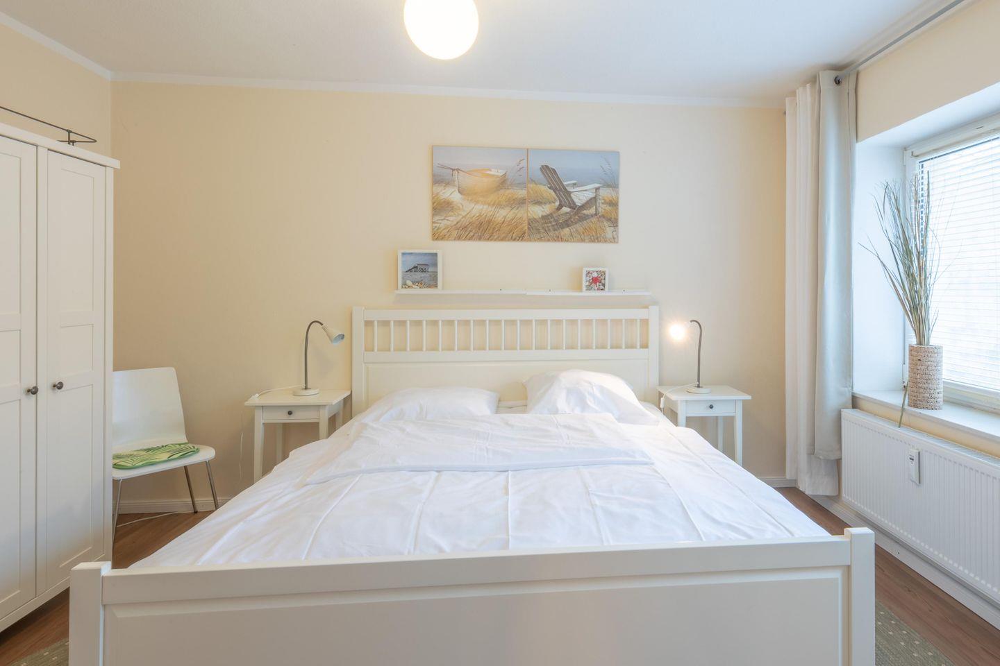 Die Wohnung ist mit allem eingerichtet, was Sie für einen schönen Aufenthalt an der Nordsee benötigen: ein Schlafzimmer mit einem Doppelbett (180 x 200), ein weiteres Schlafzimmer mit einem Doppelbett (140 x 200), eine gut ausgestattete Küche mit 4-Platten-Kochfeld, Geschirrspülmaschine, Backofen, Waschmaschine, Mikrowelle, Kaffeemaschine (Filtergröße 4). Das Wohnzimmer verfügt über ein bequemes Schlafsofa, einen Flachbild-TV und einen DVD-Player, CD-Player mit Radio. Das moderne Badezimmer ist mit einer ebenerdigen Dusche, WC und einem Waschbecken eingerichtet.