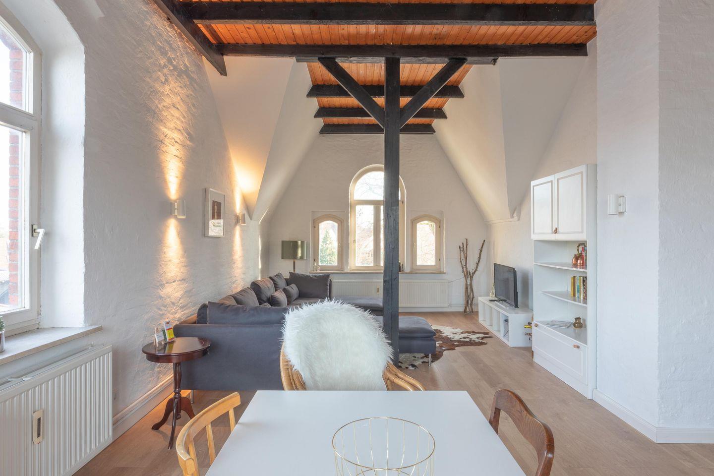 Über den Dächern von der Hafenstadt Tönning: Freuen Sie sich auf eine chice Altbauwohnung mit hohen Decken in einem imposanten Gebäude für bis zu 4 Personen.