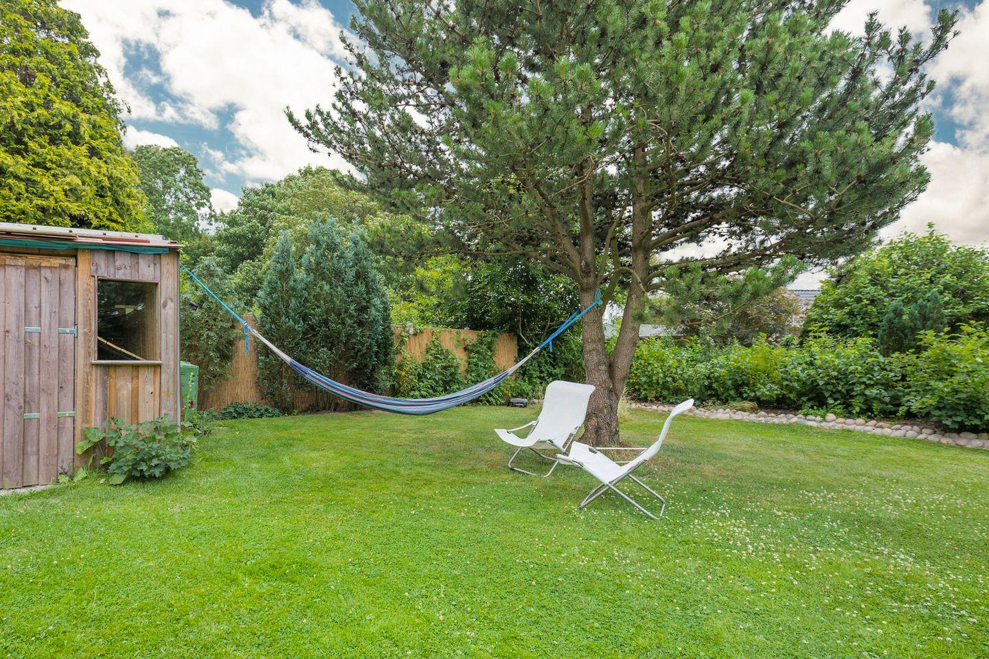 Auf der geschützten Terrasse stehen Ihnen Gartenmöbel zur Verfügung. Der große, eingewachsene Garten lädt zum Verweilen und Grillen ein.