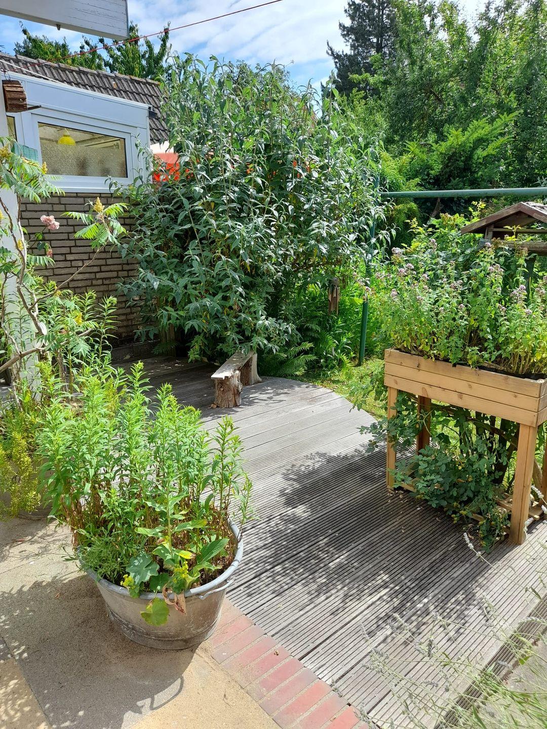kleiner Gartenteil mit überdachter Terrasse vorhanden