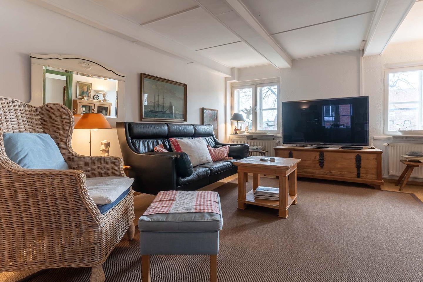 Bitte beachten Sie, dass aufgrund des Alters des Hauses einige Balkenlagen eine Höhe von 1,80 m haben. Ein Schlafzimmer und der Wohnbereich sind mit Flachbildschirmen ausgestattet. Anreise direkt am Objekt. Ab 17.00 Uhr.