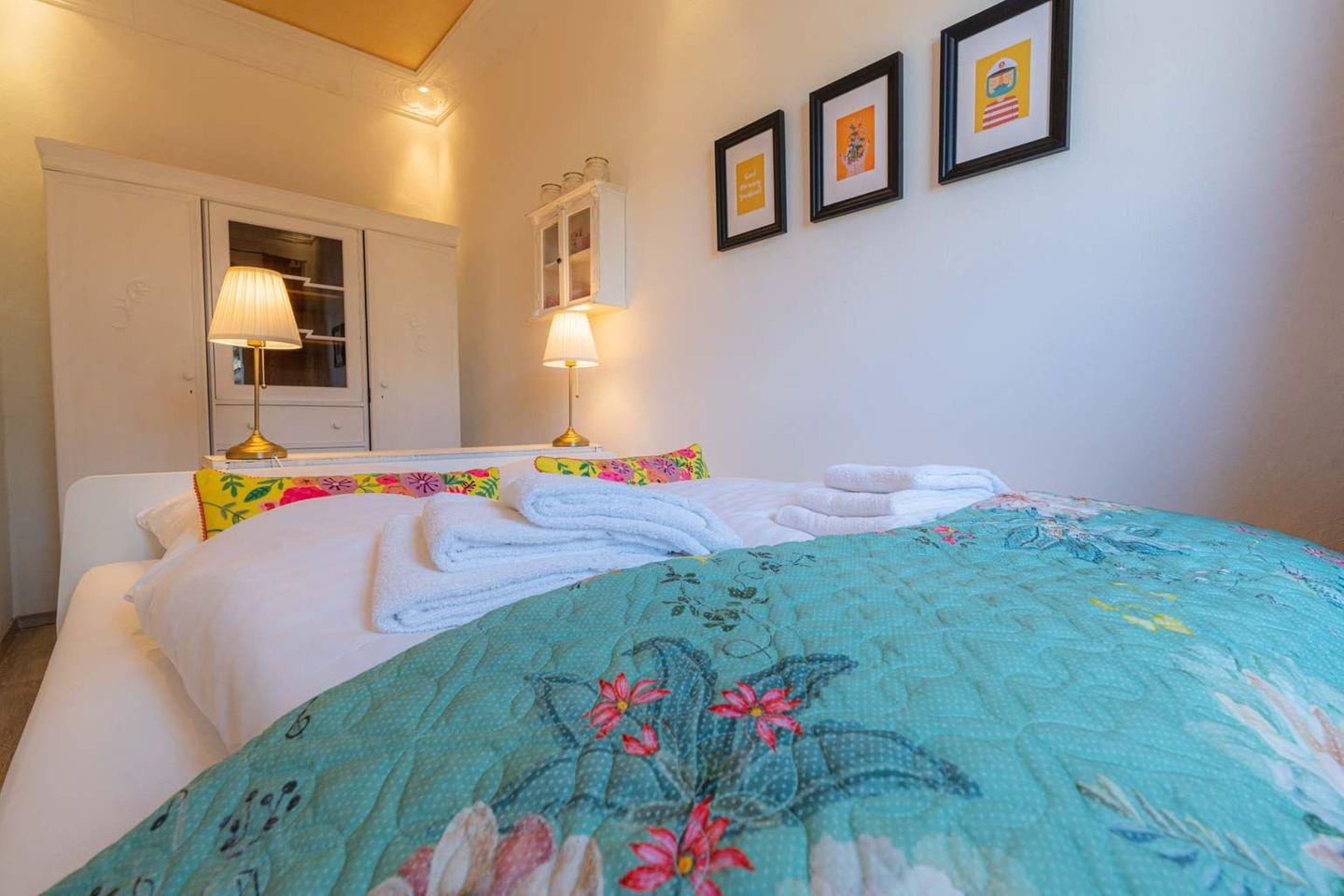 Schlafzimmer mit Doppelbett ( 160 x 200 cm) und Kleiderschrank