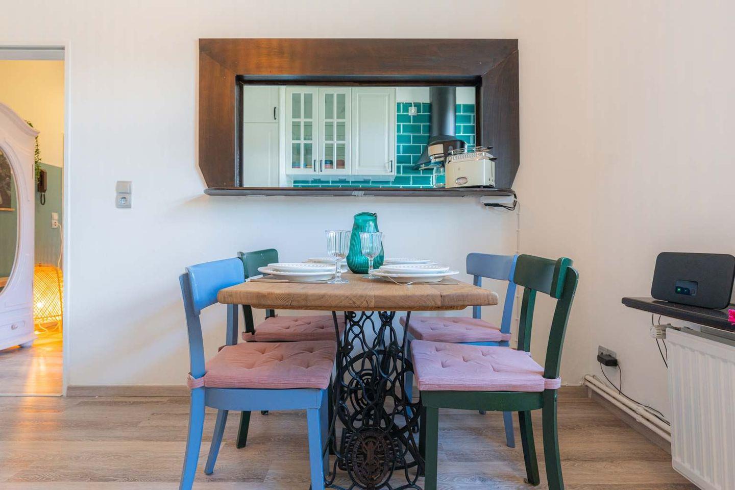 Hinter dem Haus befindet sich ein Privatparkplatz und ein großer Garten. Für die Gäste des App. Goode Stuuv stehen in einem separaten Schuppen Gartenmöbel zur Verfügung. In diesem können auch zwei Fahrräder reingestellt werden.