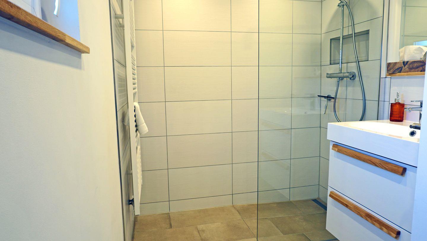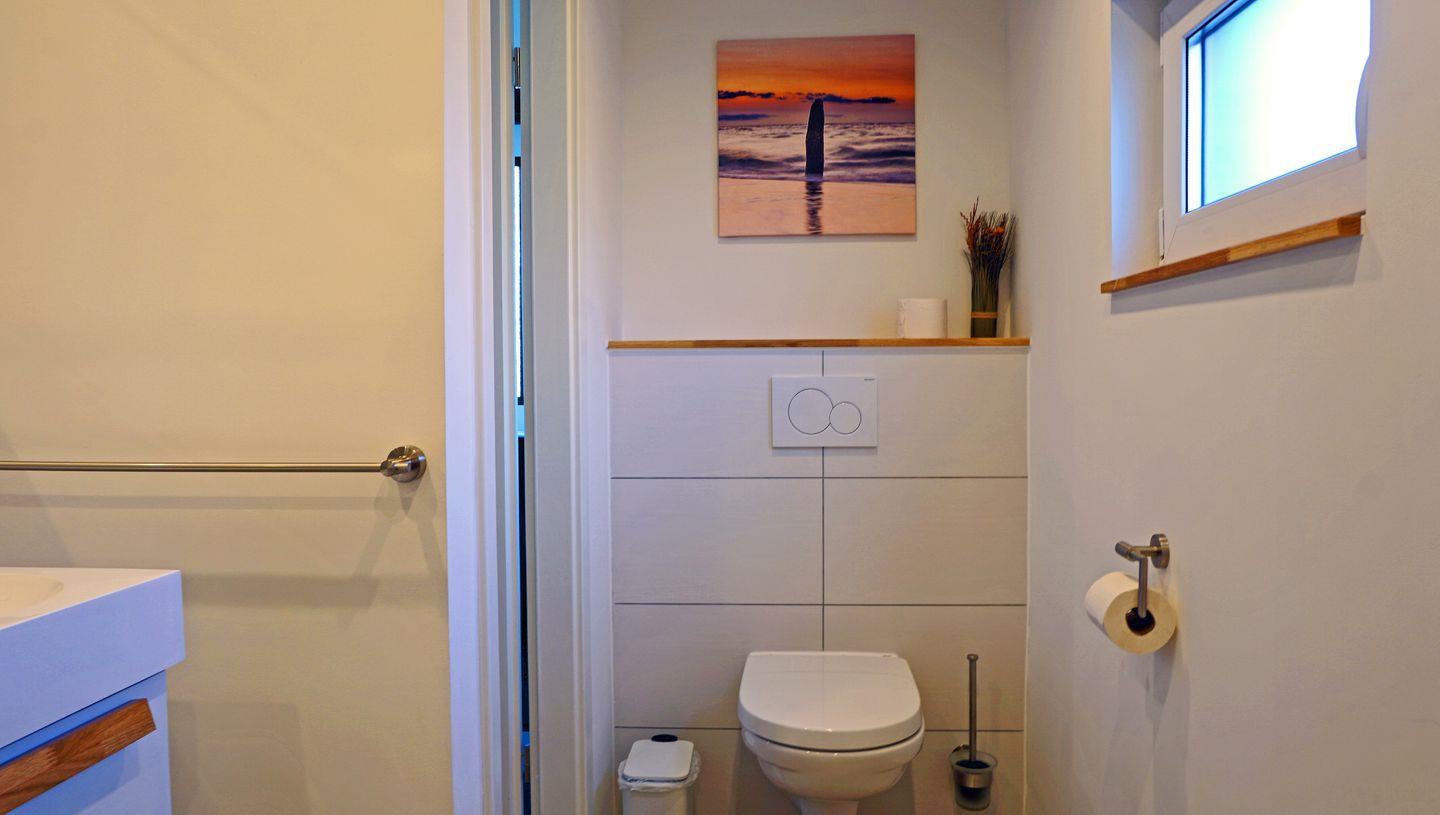 Das Erdgeschoss bietet ein modernes Duschbad mit Fußbodenheizung und ein Gäste-WC (WC, Spiegel,Waschbecken) im Obergeschoss sorgt für Komfort. Freuen Sie sich auf zwei Doppelbettschlafzimmer und ein Schlafzimmer mit 2 Einzelbetten, jeweils mit begehbaren Kleiderschränken.
